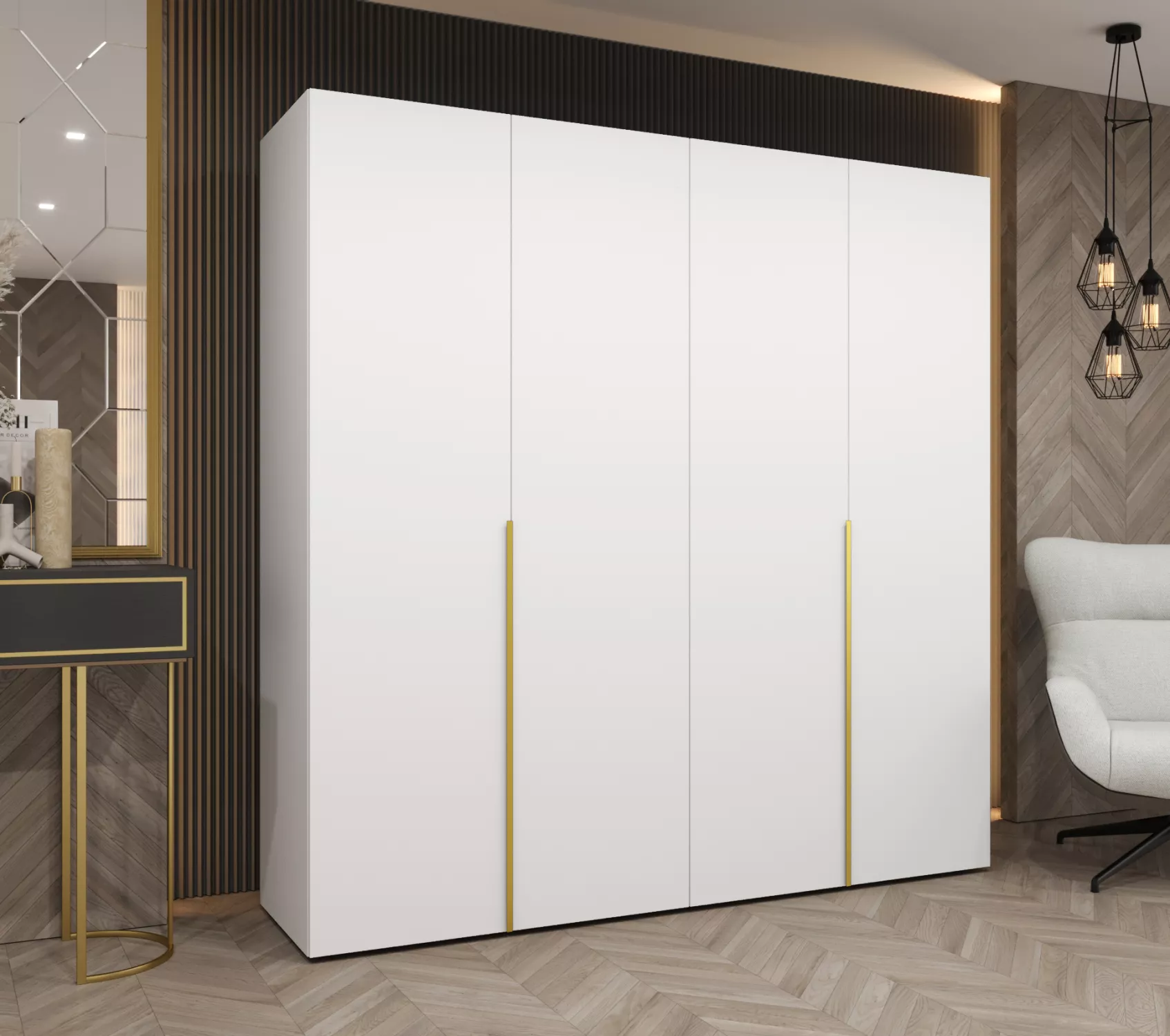 Šatní skříň 200 cm BETULA - bílá / zlatá