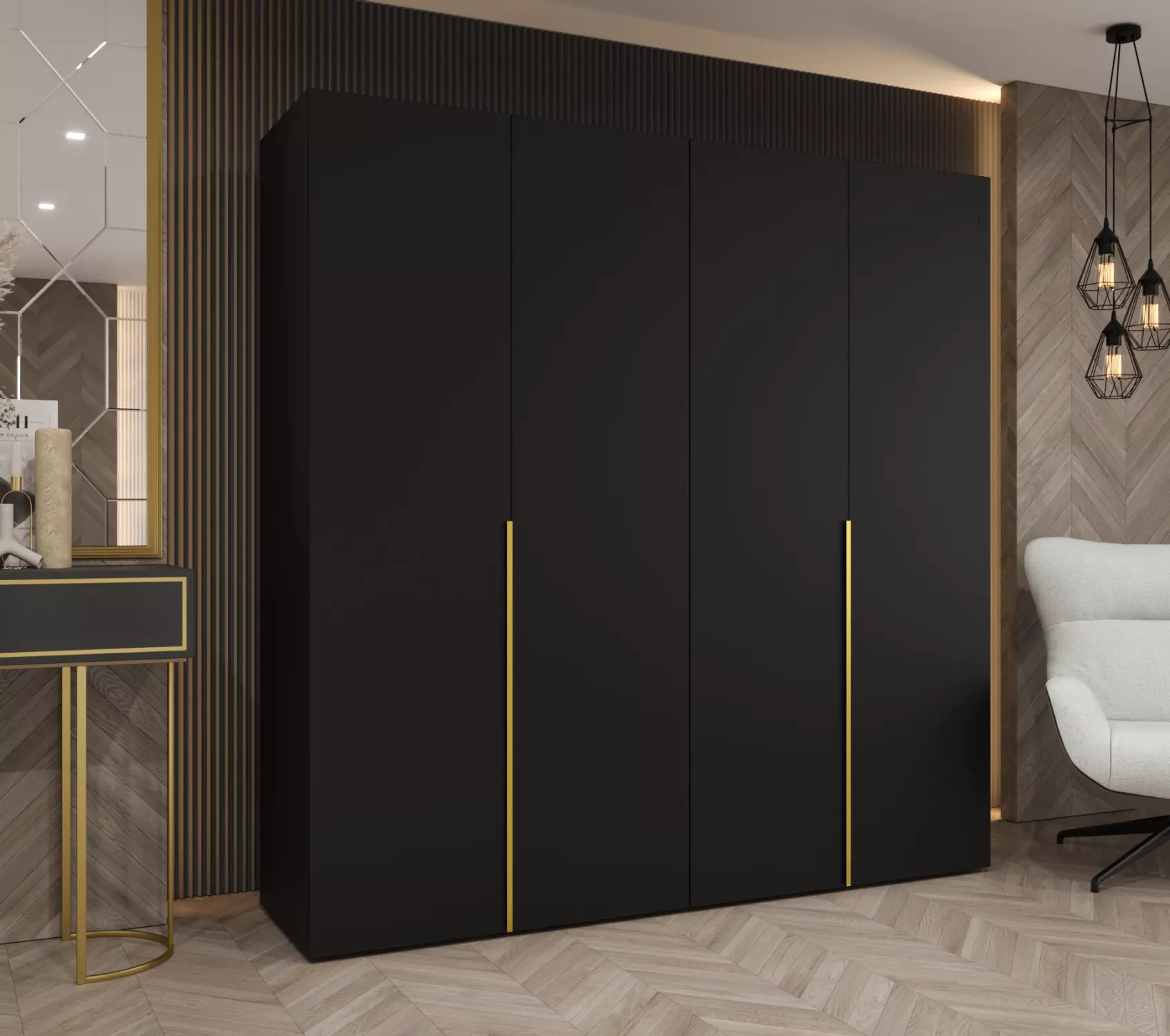 Šatní skříň 200 cm BETULA - černá / zlatá