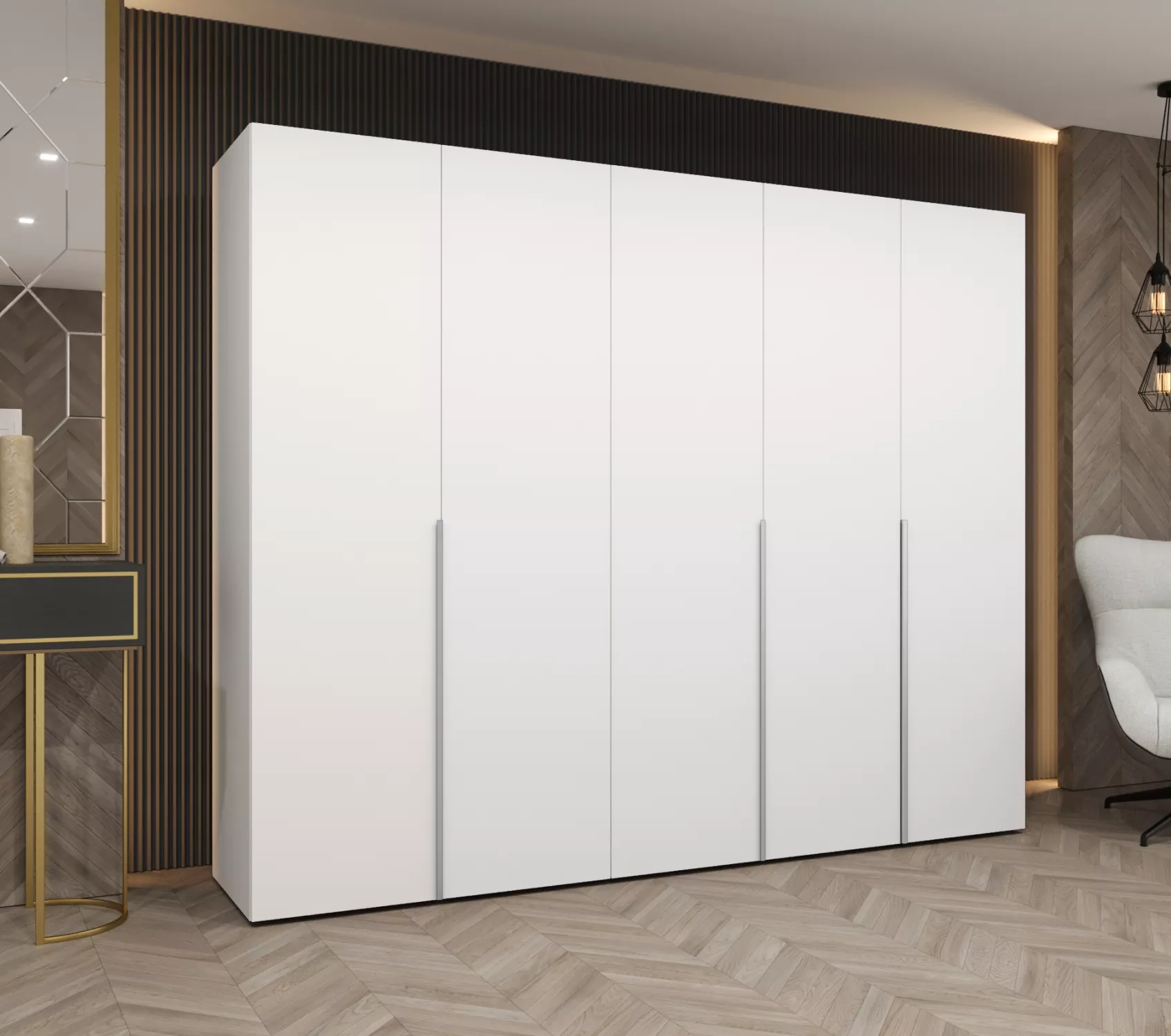Šatní skříň 250 cm BETULA - bílá / stříbrná
