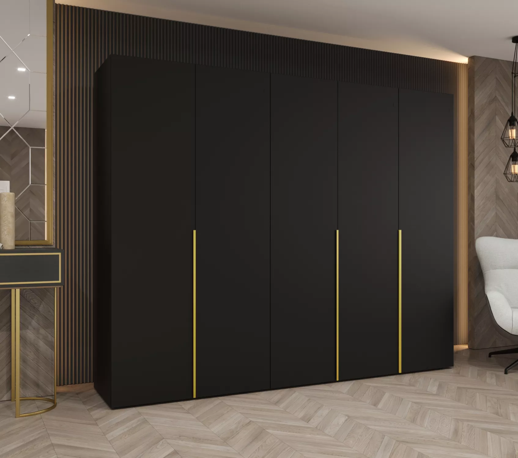Šatní skříň 250 cm BETULA - černá / zlatá