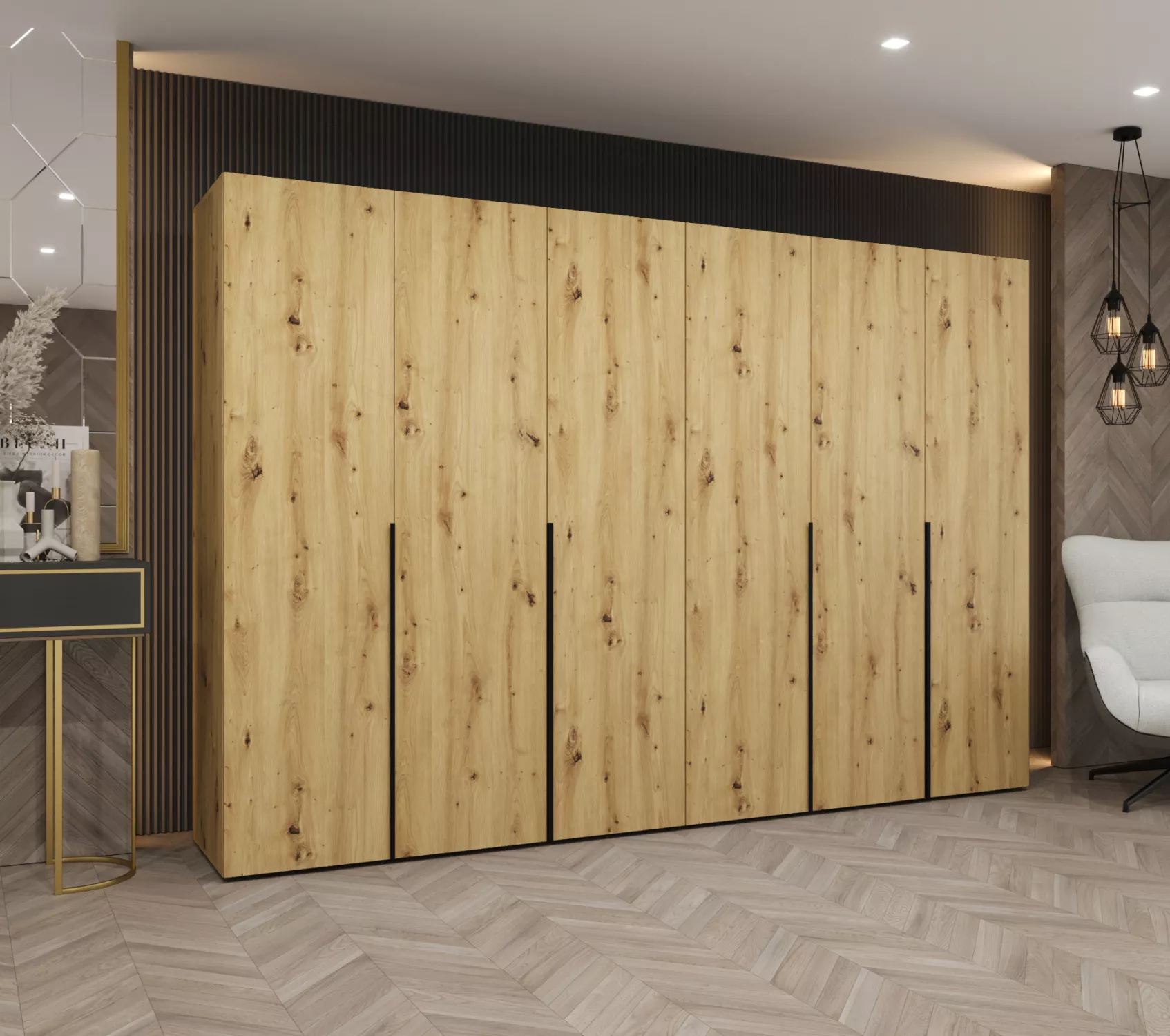 Šatní skříň 300 cm BETULA - dub artisan / černá