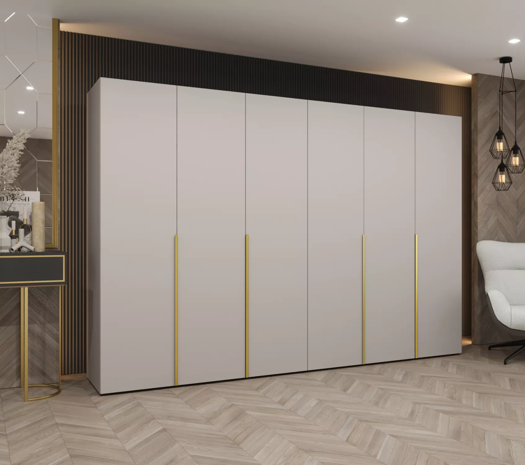 Šatní skříň 300 cm BETULA - kašmírová / zlatá