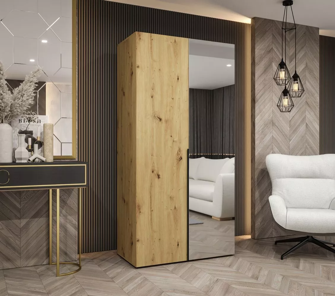 Šatní skříň 100 cm ASUDA se zrcadlem představuje perfektní řešení úložného prostoru pro ložnice či šatny. Zrcadlo opticky zvětší a prosvětlí interiér.