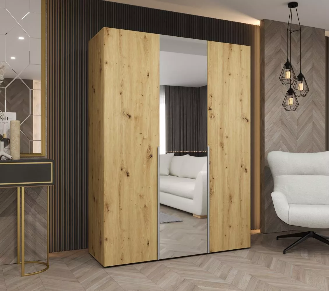 Šatní skříň 150 cm ASUDA se zrcadlem - dub artisan / stříbrná