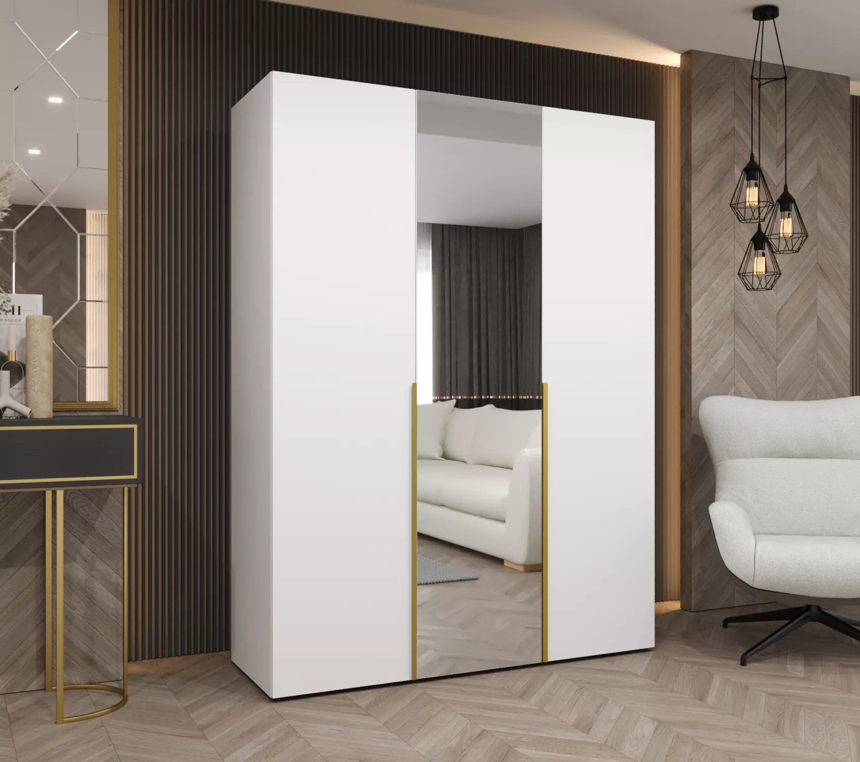 Šatní skříň 150 cm ASUDA se zrcadlem - bílá / zlatá