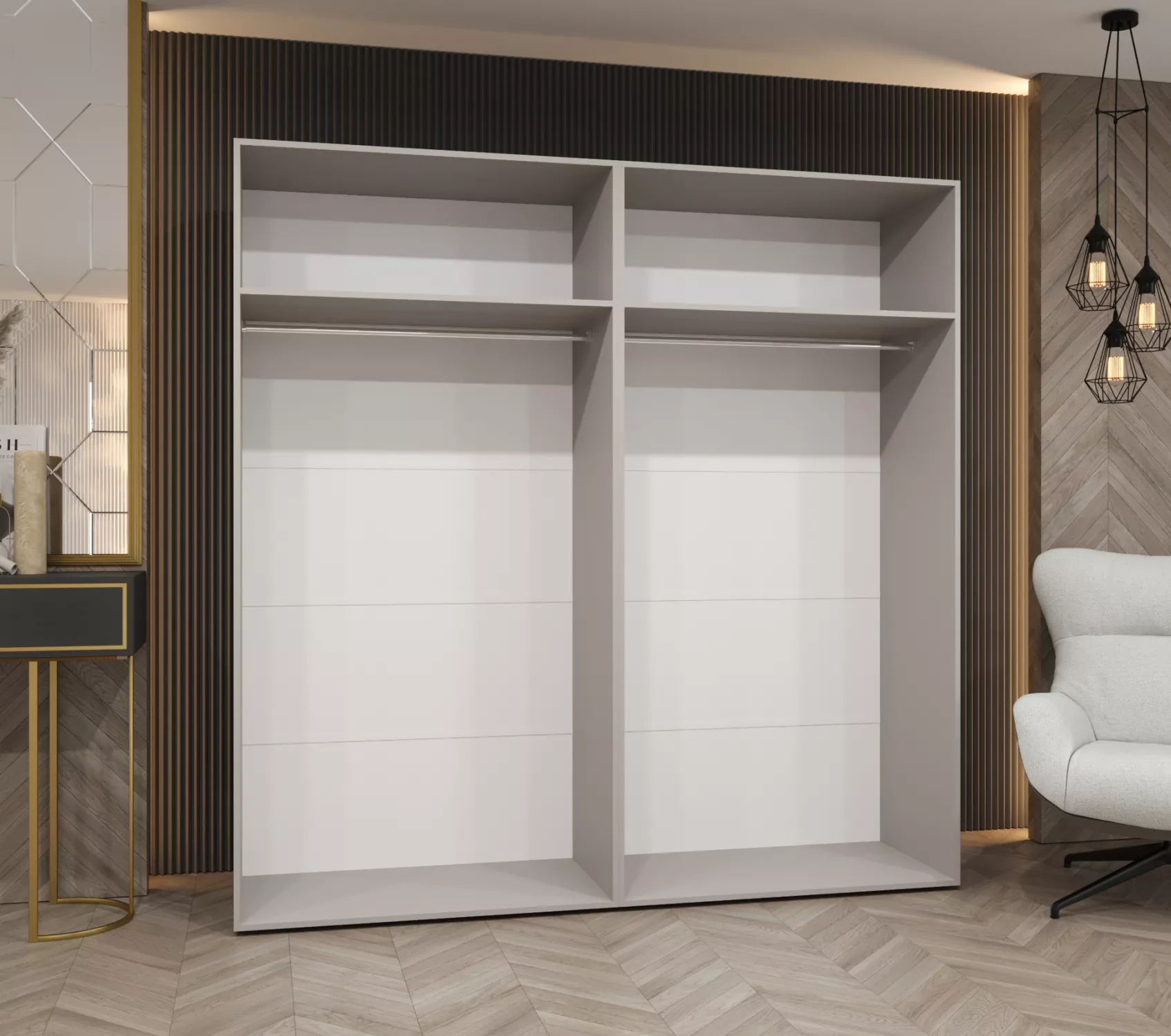 Šatní skříň 200 cm ASUDA se zrcadly představuje perfektní řešení úložného prostoru pro ložnice či šatny. Zrcadla opticky zvětší a prosvětlí interiér.