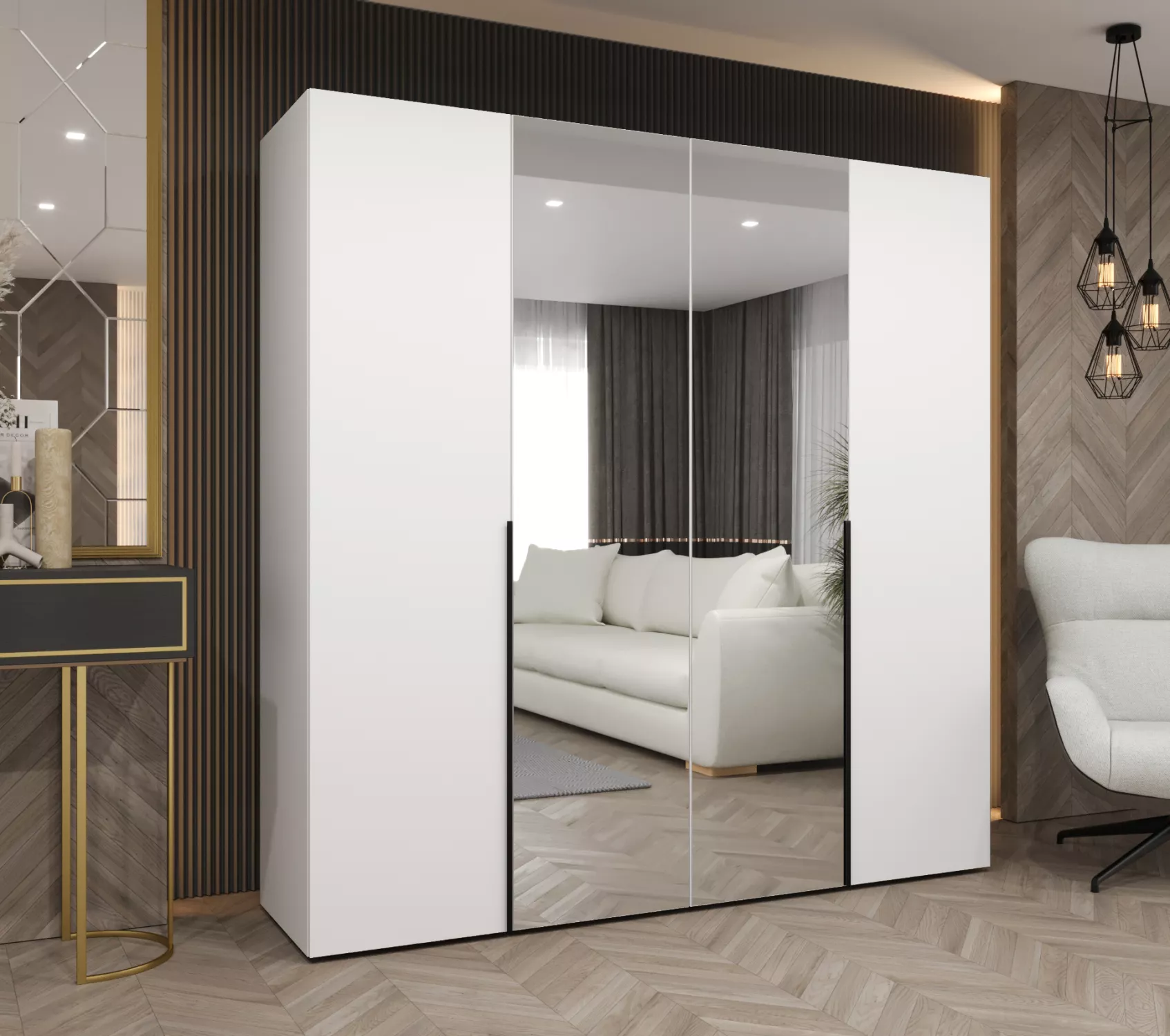 Šatní skříň 200 cm ASUDA se zrcadly představuje perfektní řešení úložného prostoru pro ložnice či šatny. Zrcadla opticky zvětší a prosvětlí interiér.