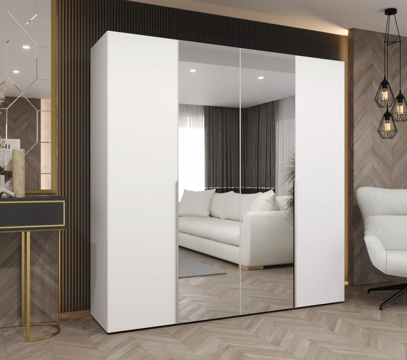 Šatní skříň 200 cm ASUDA se zrcadly představuje perfektní řešení úložného prostoru pro ložnice či šatny. Zrcadla opticky zvětší a prosvětlí interiér.