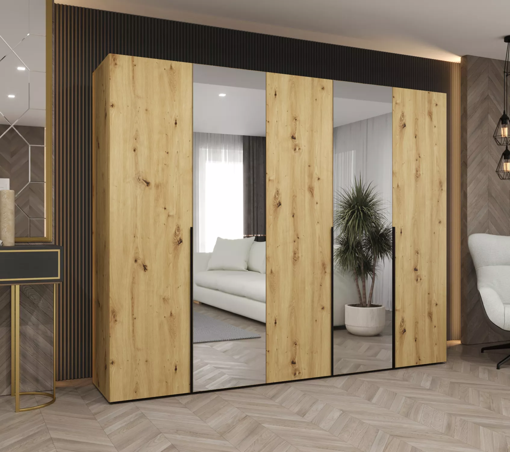 Šatní skříň 250 cm ASUDA se zrcadly - dub artisan / černá