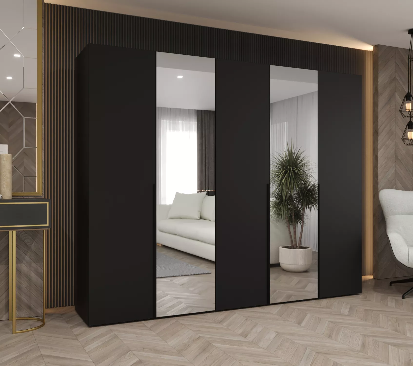 Šatní skříň 250 cm ASUDA se zrcadly - černá