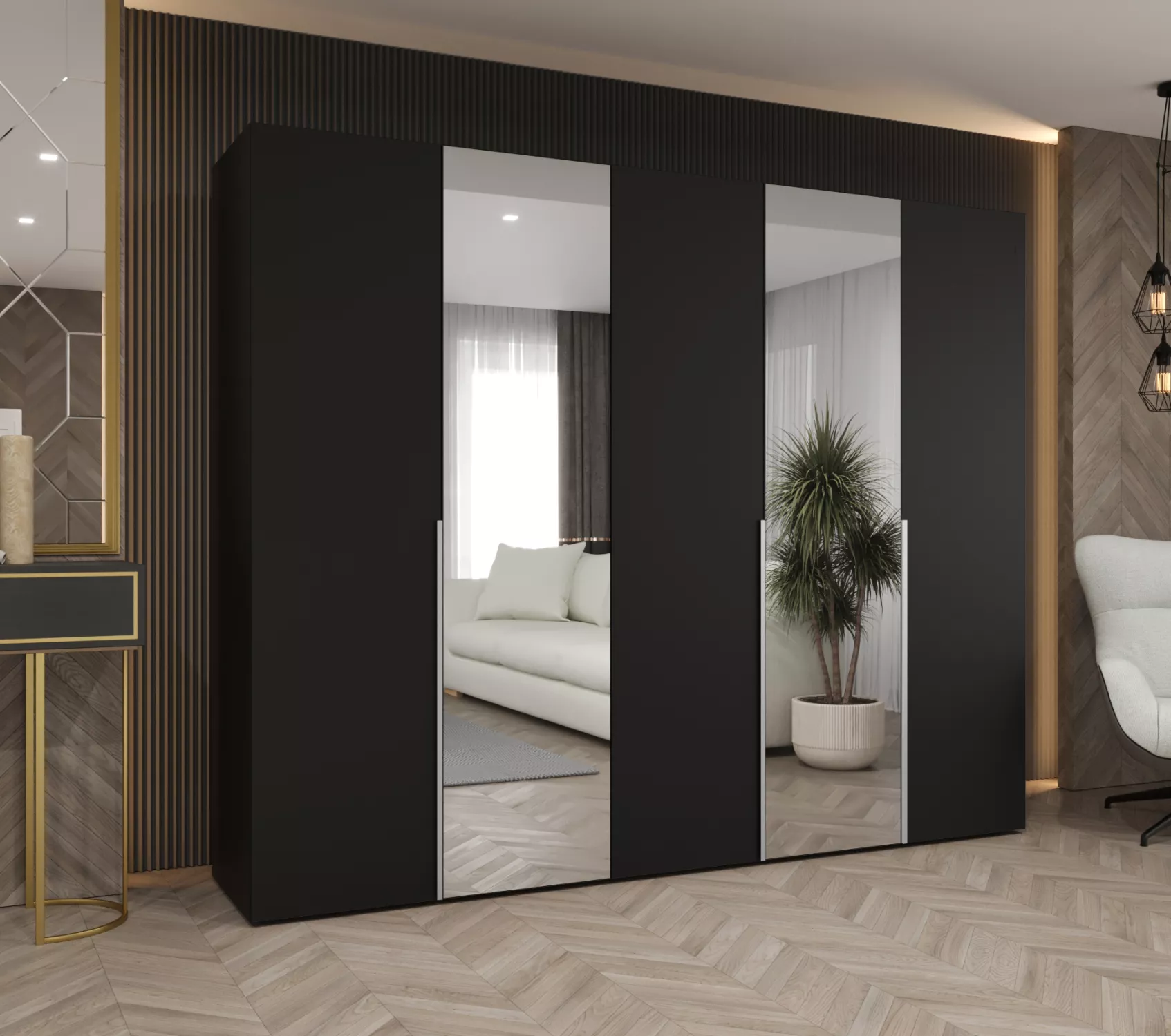 Šatní skříň 250 cm ASUDA se zrcadly - černá / stříbrná