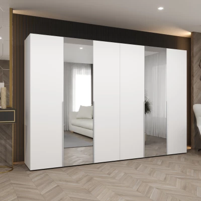Šatní skříň 300 cm ASUDA se zrcadly - bílá / stříbrná