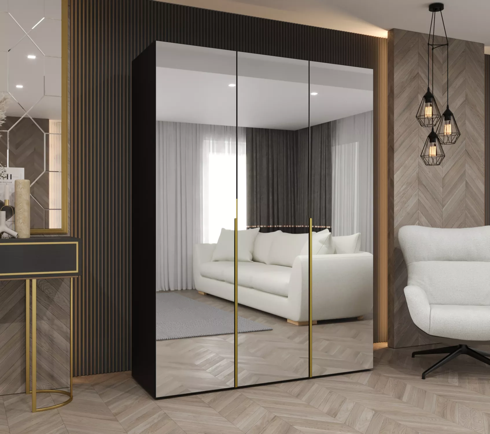 Zrcadlová šatní skříň 150 cm BUGRA - černá / zlatá