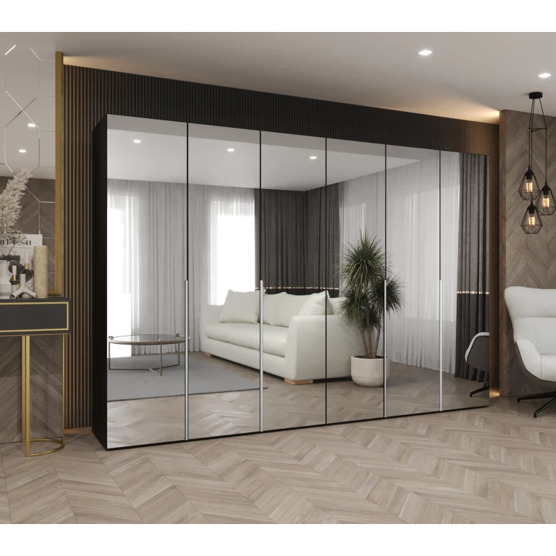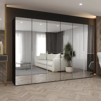 Zrcadlová šatní skříň 300 cm BUGRA - černá / stříbrná