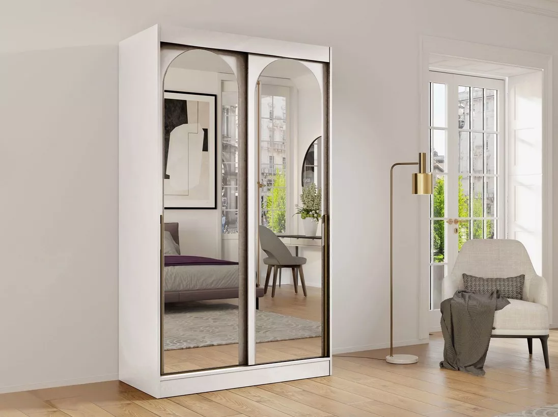 Šatní skříň se zrcadlem 120 cm IVAFE - kašmír / zlatá