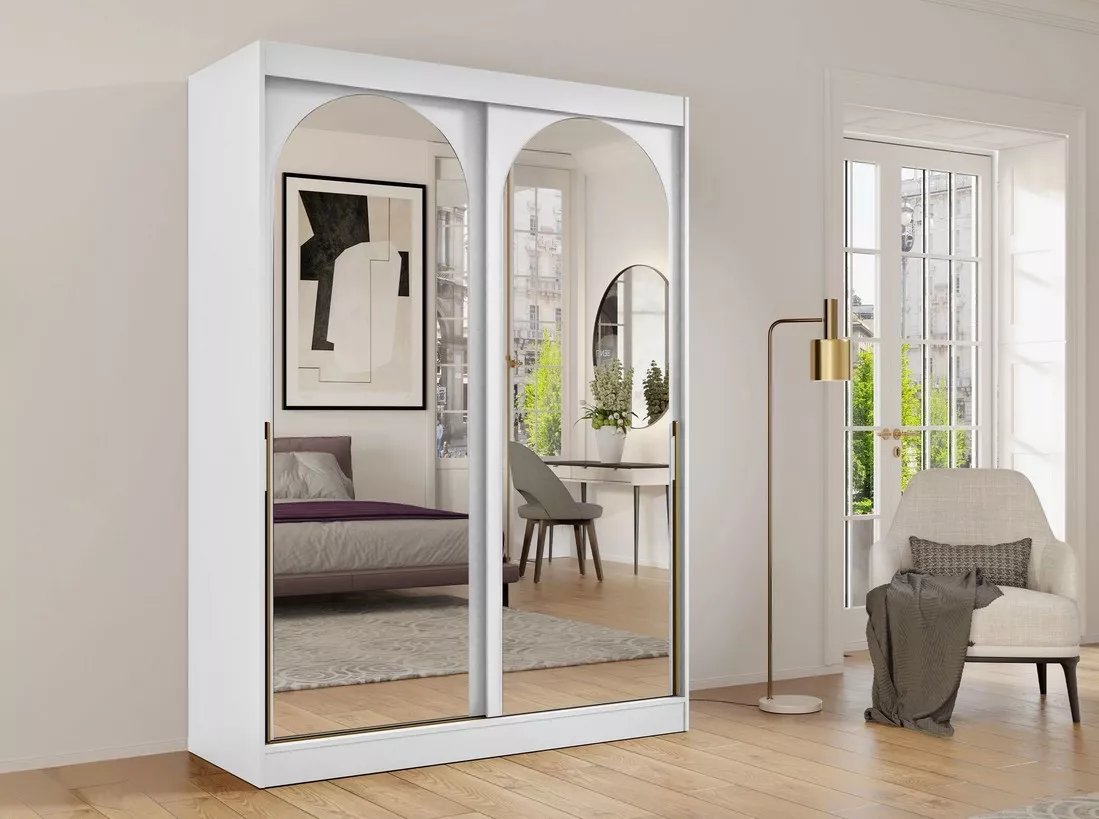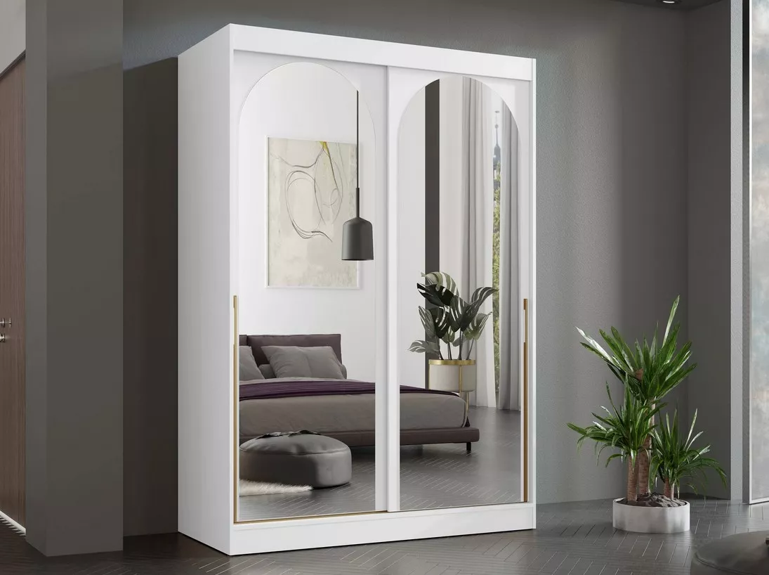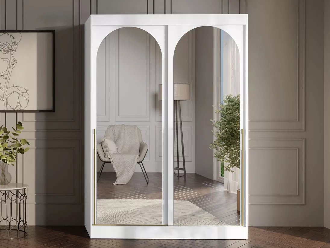 Šatní skříň se zrcadlem 150 cm IVAFE - bílá / zlatá