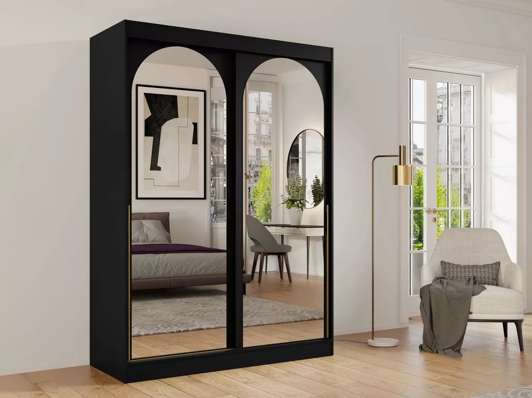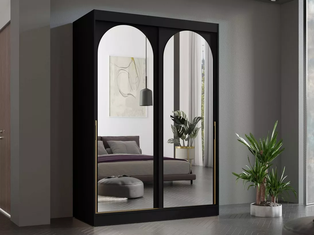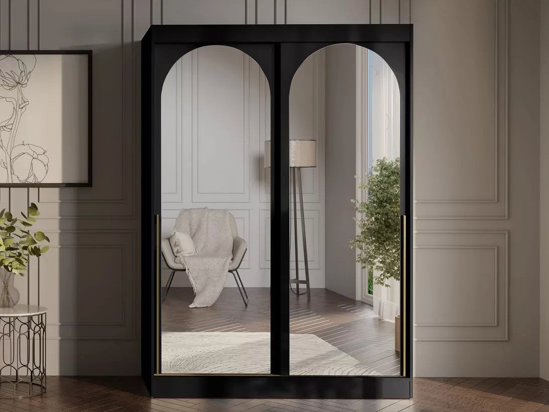 Šatní skříň se zrcadlem 150 cm IVAFE - černá / zlatá