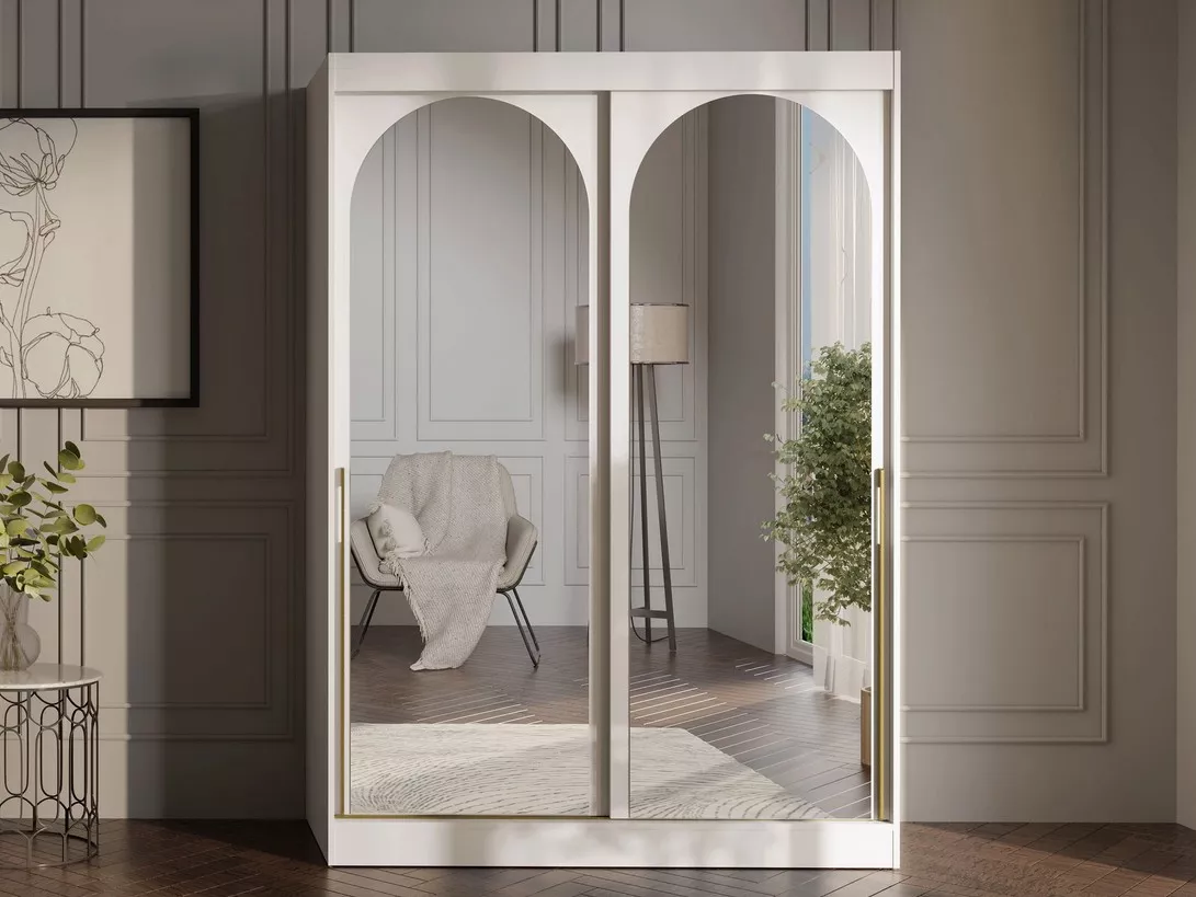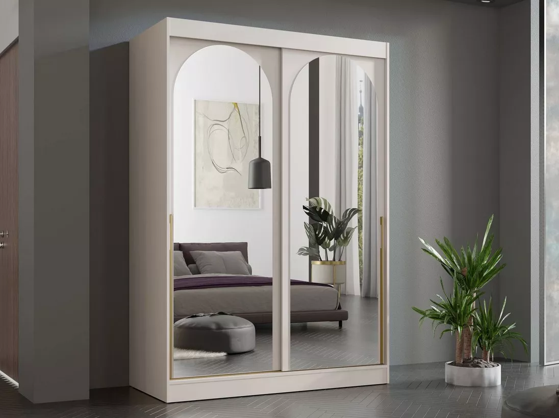 Šatní skříň se zrcadlem 150 cm IVAFE - kašmír / zlatá