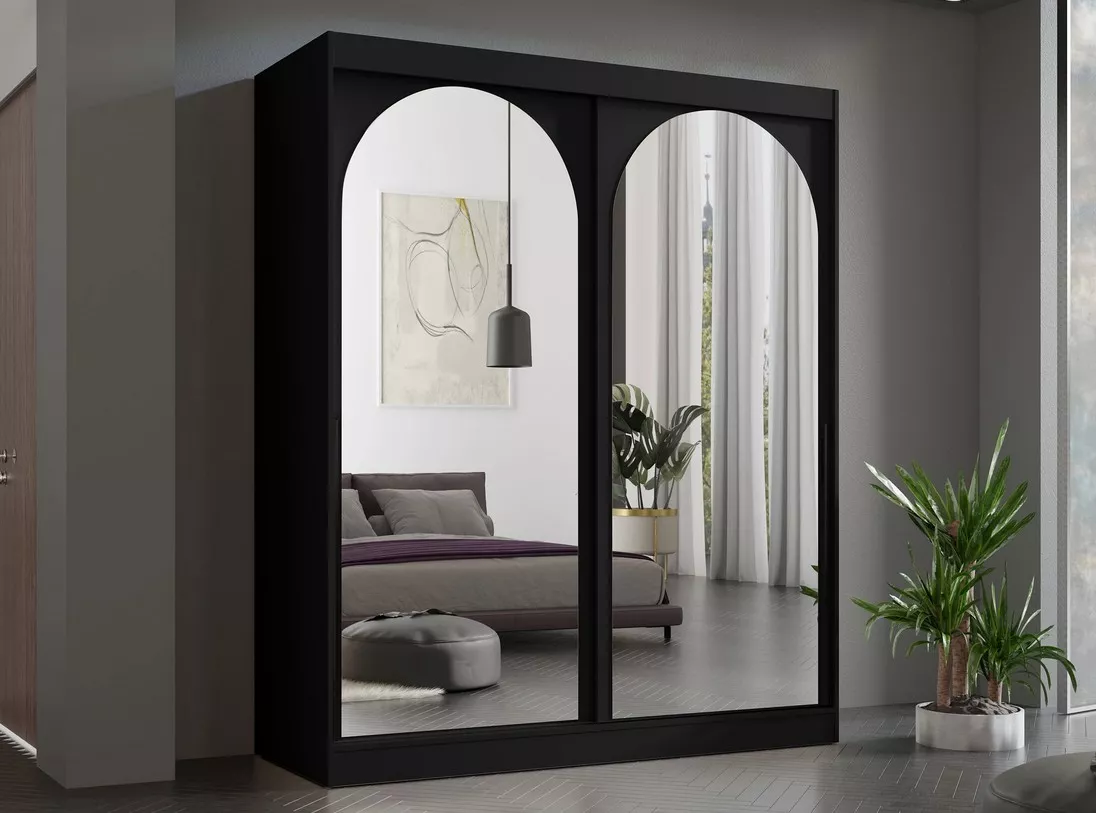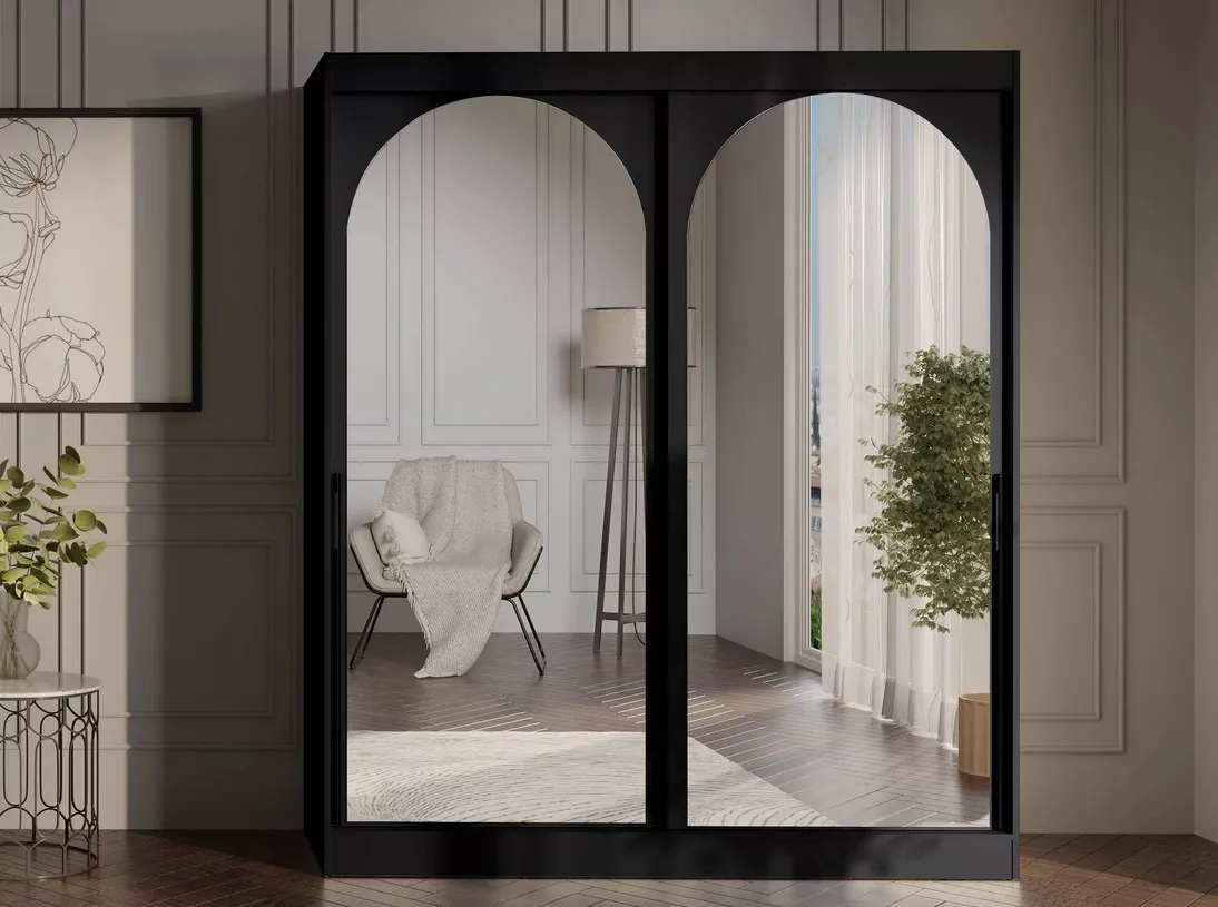 Šatní skříň se zrcadlem 180 cm IVAFE - černá