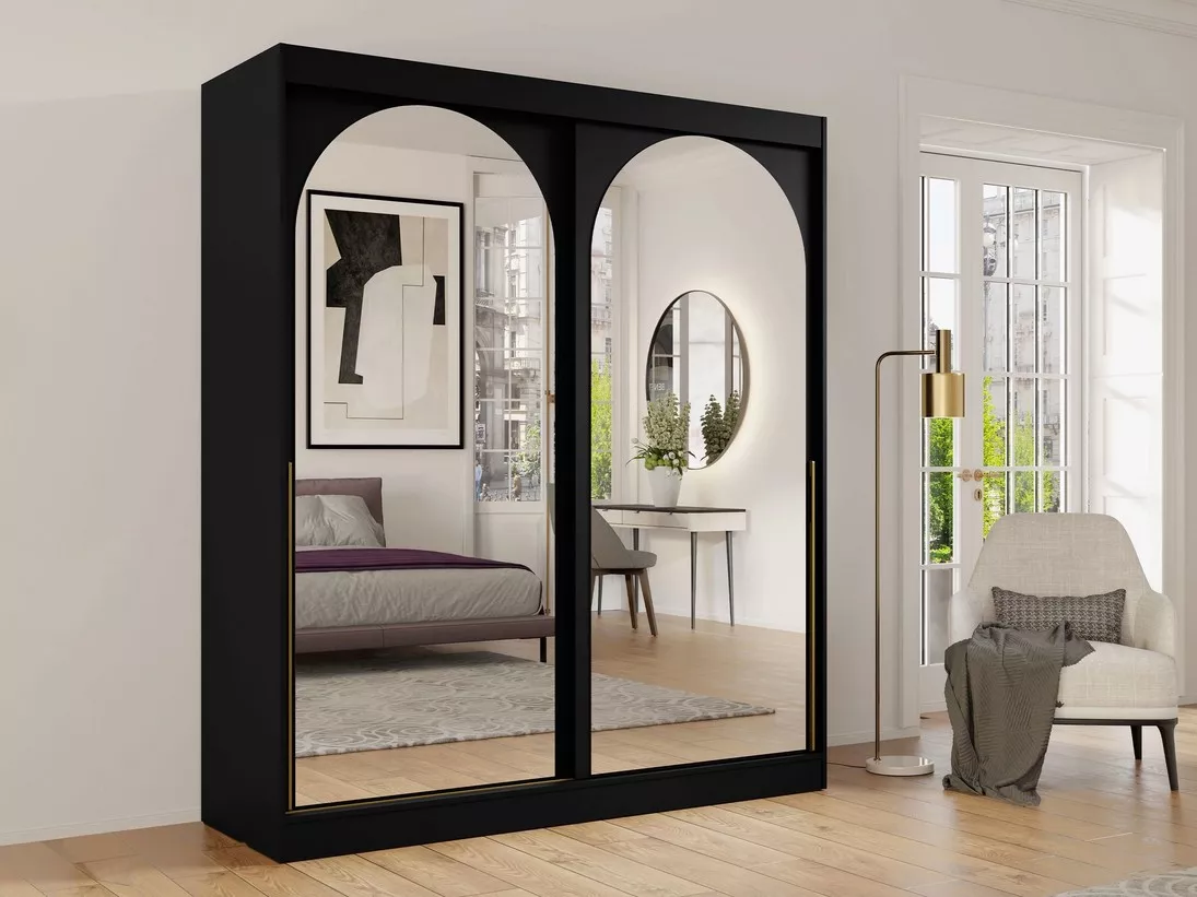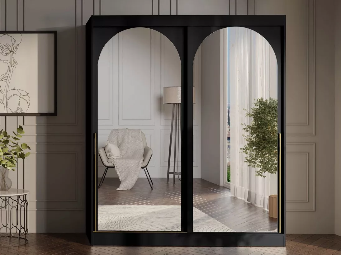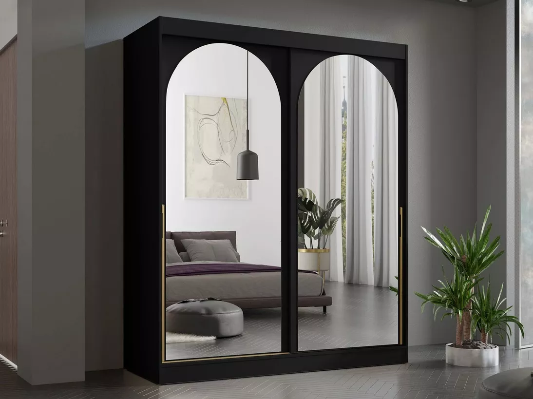 Šatní skříň se zrcadlem 180 cm IVAFE - černá / zlatá