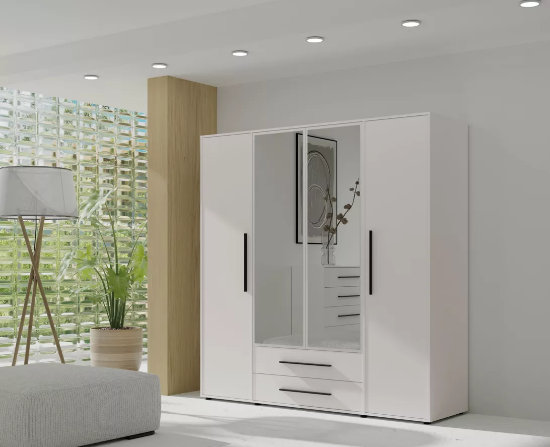 Šatní skříň se zrcadlem 198 cm ANDELINA - bílá matná