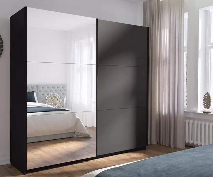 Velká šatní skříň 201 cm se zrcadlem APASTO - grafitová