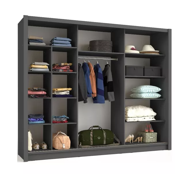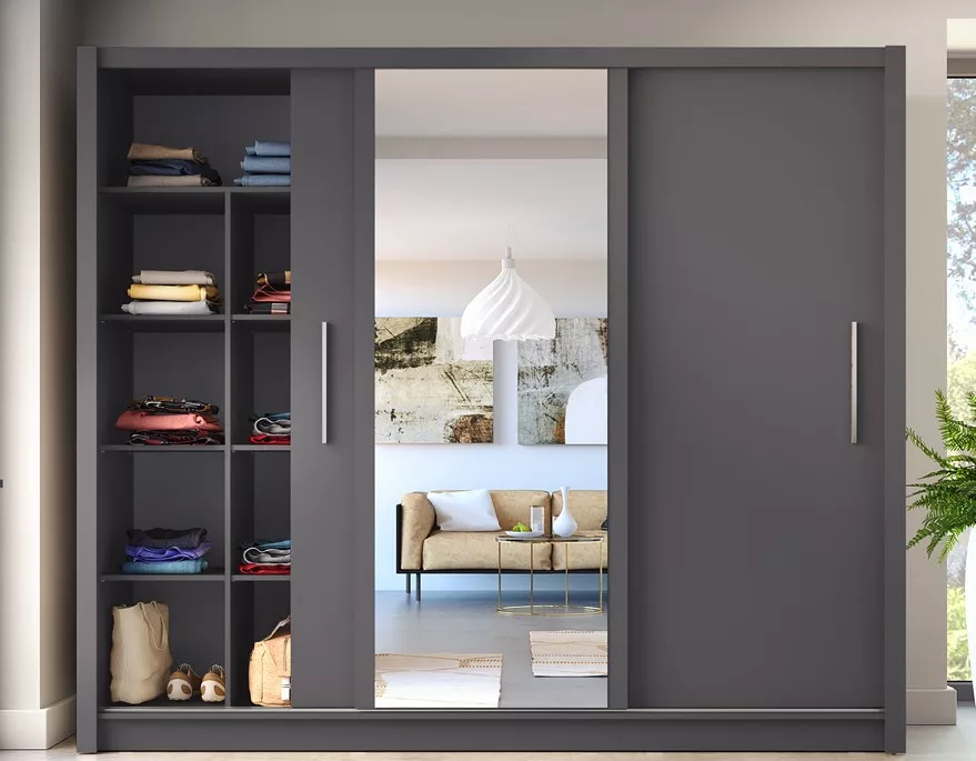 Velká šatní skříň 248 cm se zrcadlem ARMENIA - grafitová