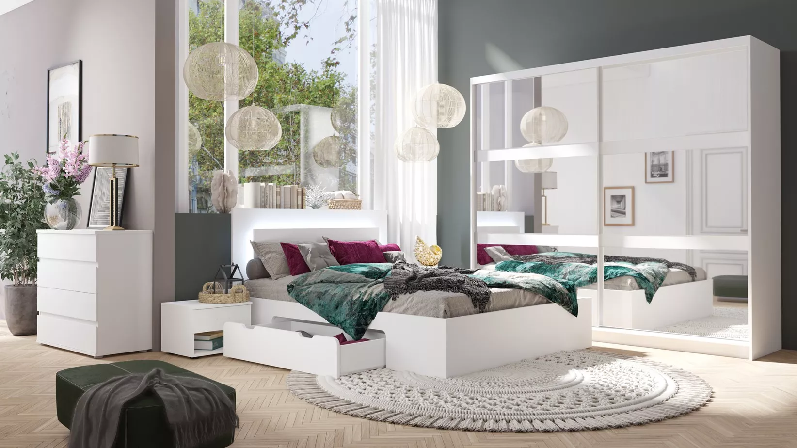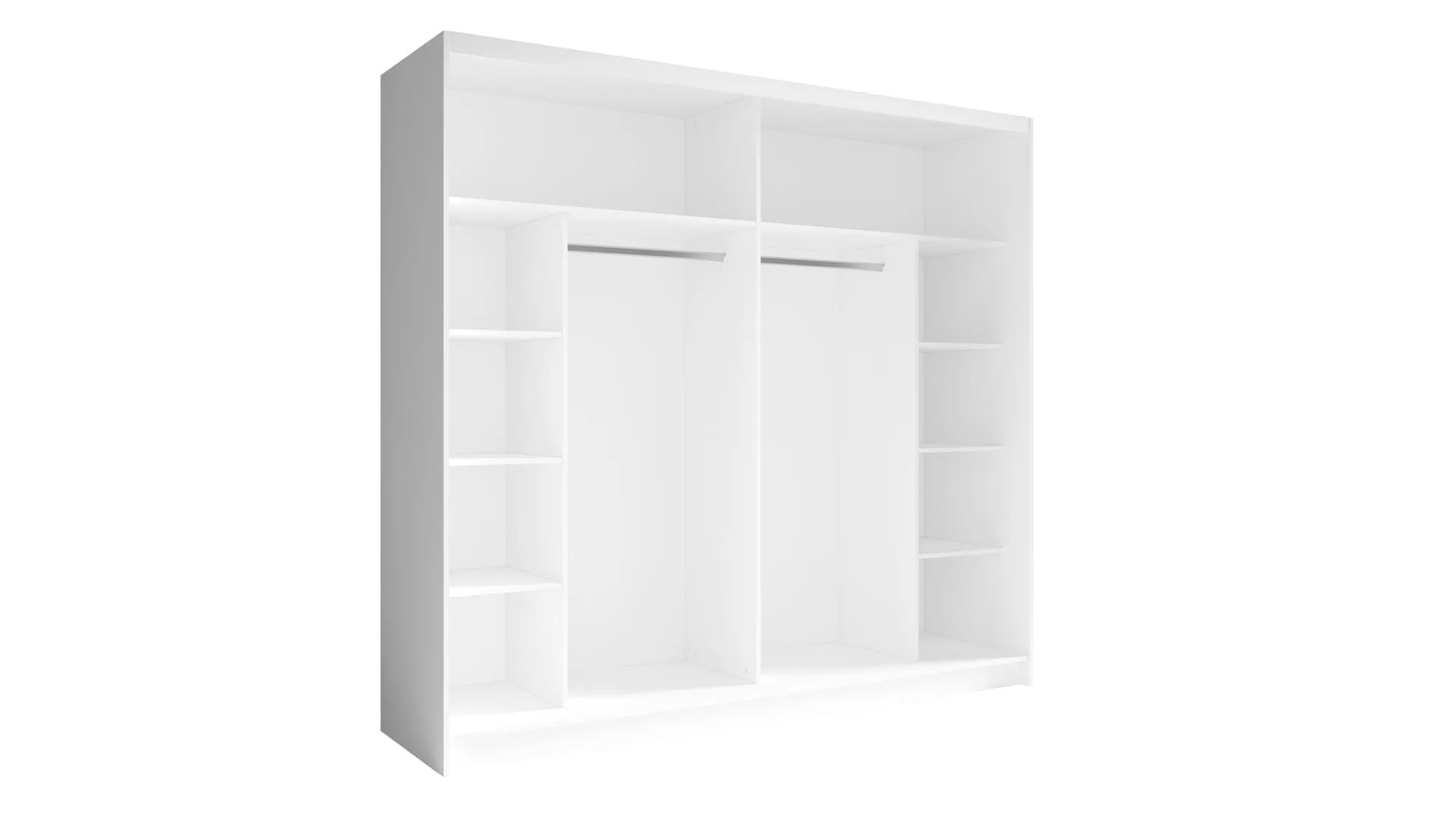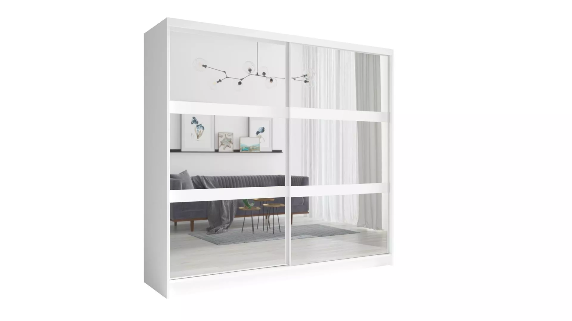 Objevte šatní skříň DUITAMA a vneste do ložnice styl i řád. Velké zrcadlo opticky zvětší prostor, posuvné dveře šetří místo a vnitřní členění se 2 šatními tyčemi a policemi poskytne dostatek úložného prostoru. Matné provedení v moderním designu dodává interiéru elegantní a nadčasový vzhled.