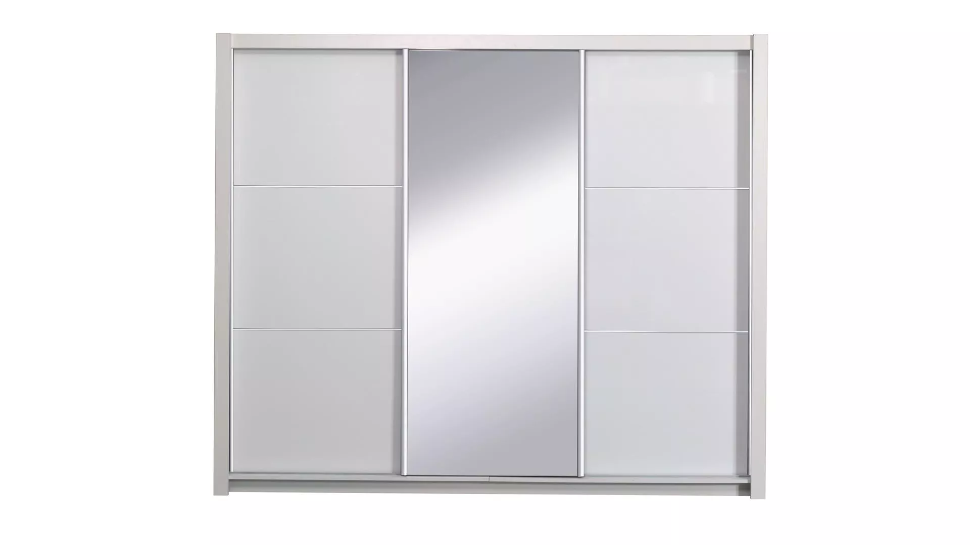 Velká zrcadlová šatní skříň 258 cm CAJICA - alpská bílá / lesklá bílá