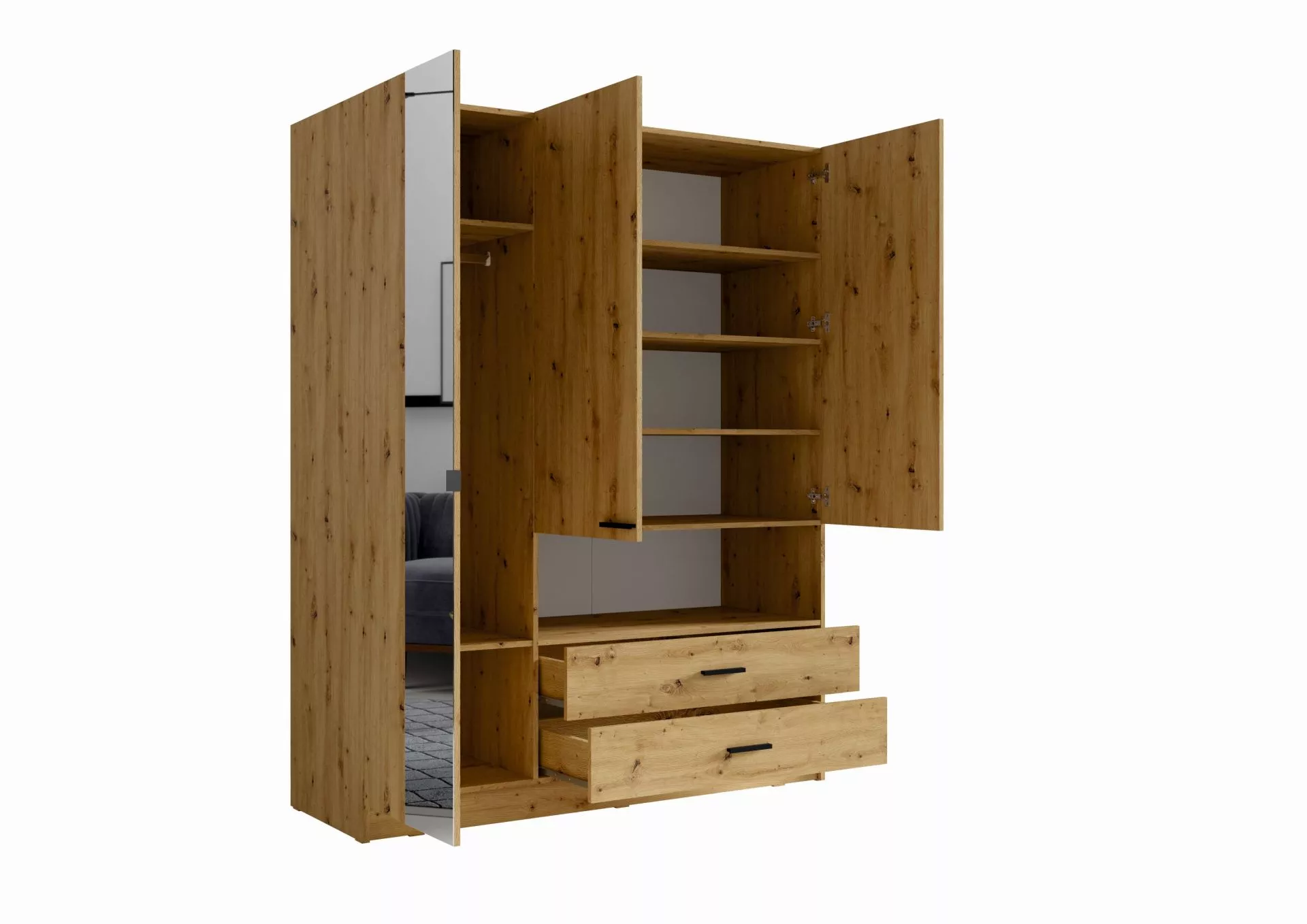 Šatní skříň se zrcadlem 159 cm CALARCA - dub artisan