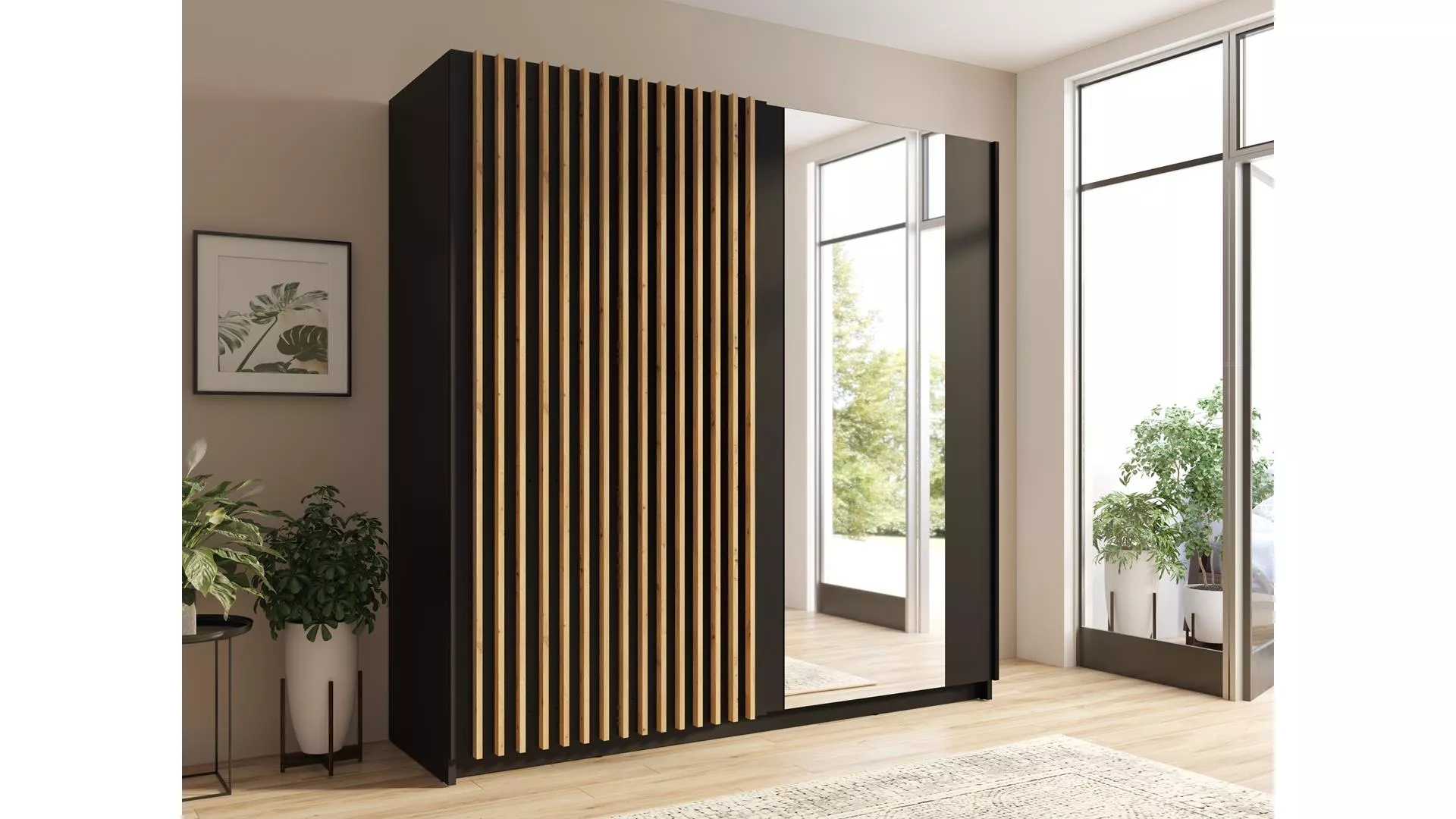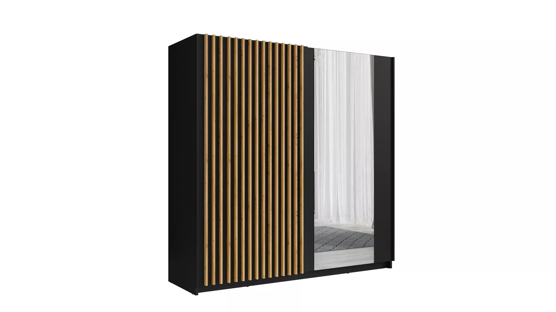 Velká šatní skříň 201 cm se zrcadlem SINCEJELO - dub artisan / černá