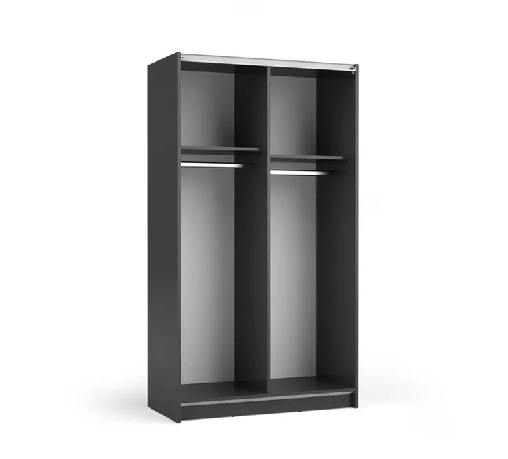 Šatní skříň CARTAGO se zrcadlem a posuvnými dveřmi. Interiér skříně byl navržen s ohledem na maximální funkčnost – je vybaven policemi a šatními tyčemi, které umožňují pohodlné uložení oblečení a dalších předmětů.