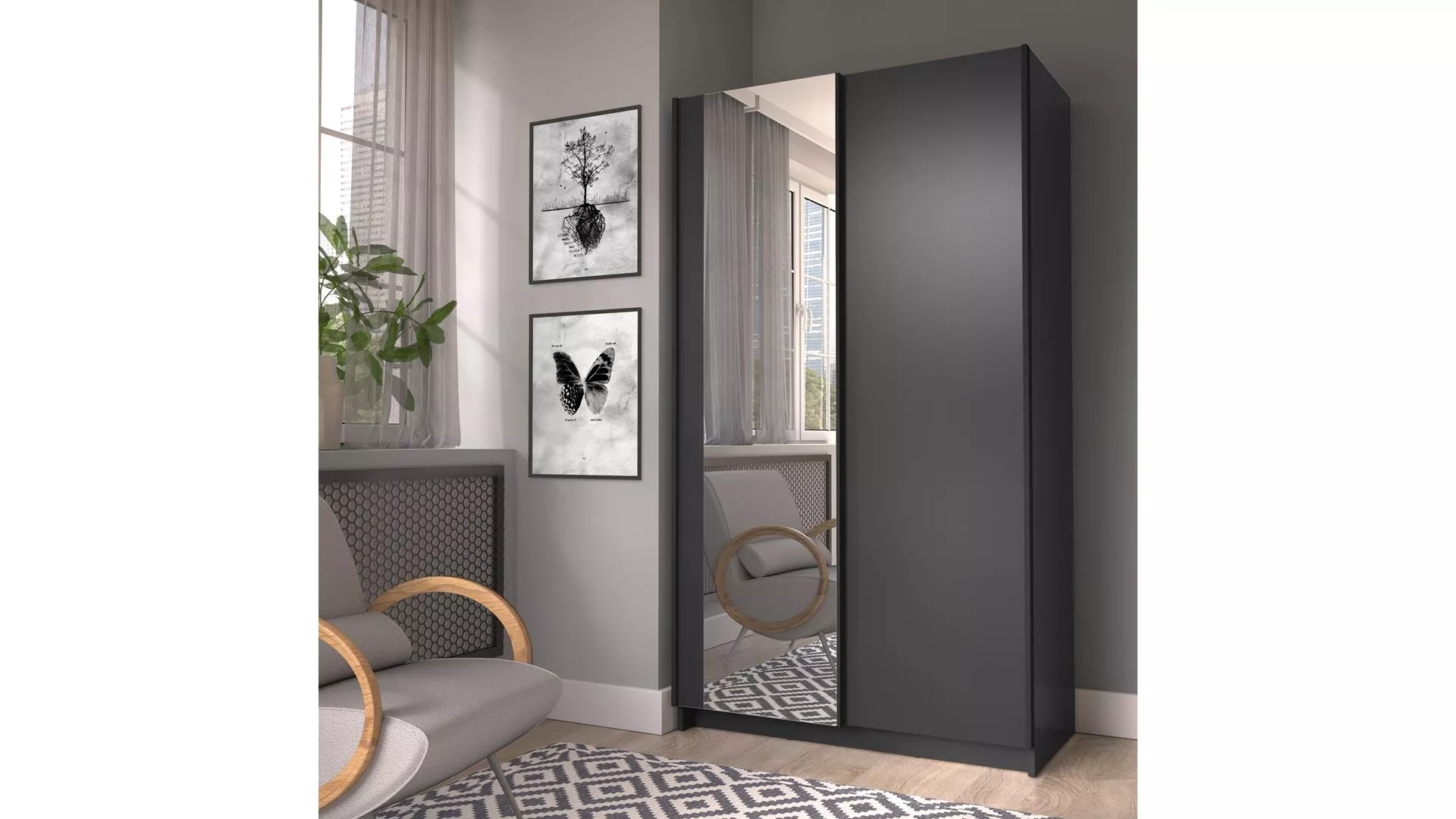 Úzká zrcadlová šatní skříň 100 cm CARTAGO - černá
