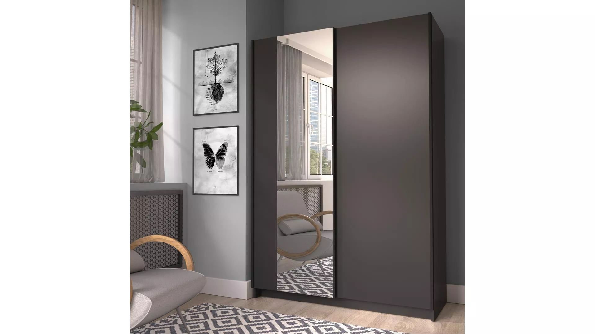 Úzká zrcadlová šatní skříň 120 cm CARTAGO - černá