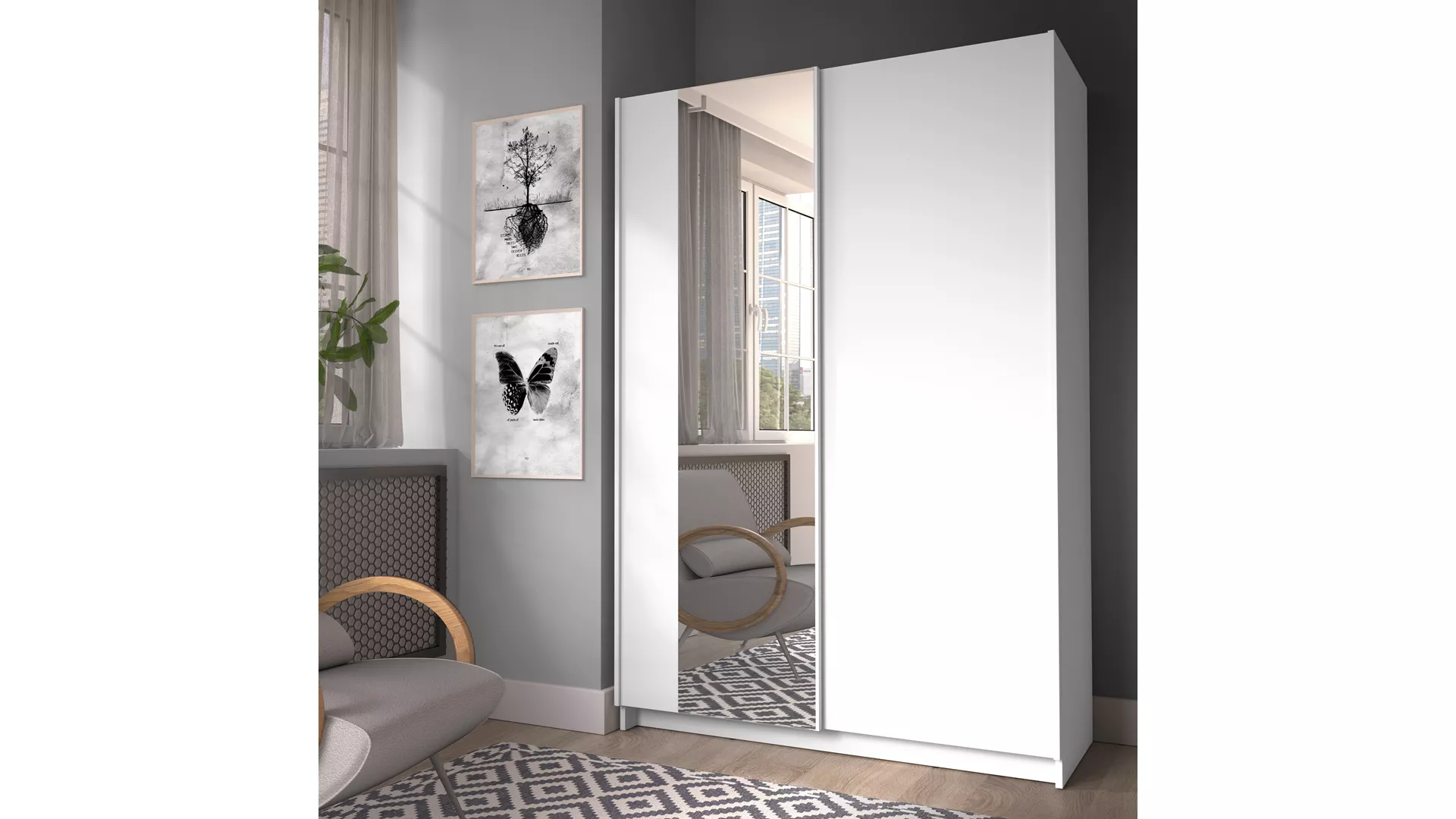 Úzká zrcadlová šatní skříň 120 cm CARTAGO - bílá