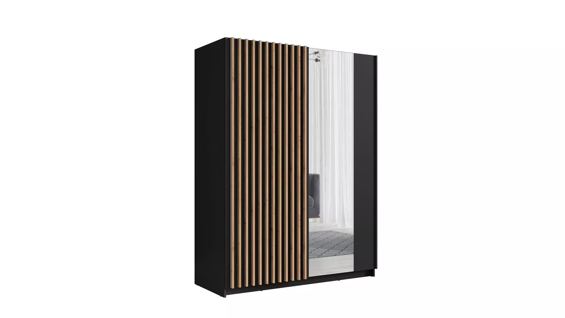 Šatní skříň se zrcadlem 150 cm BUGA - dub artisan / černá