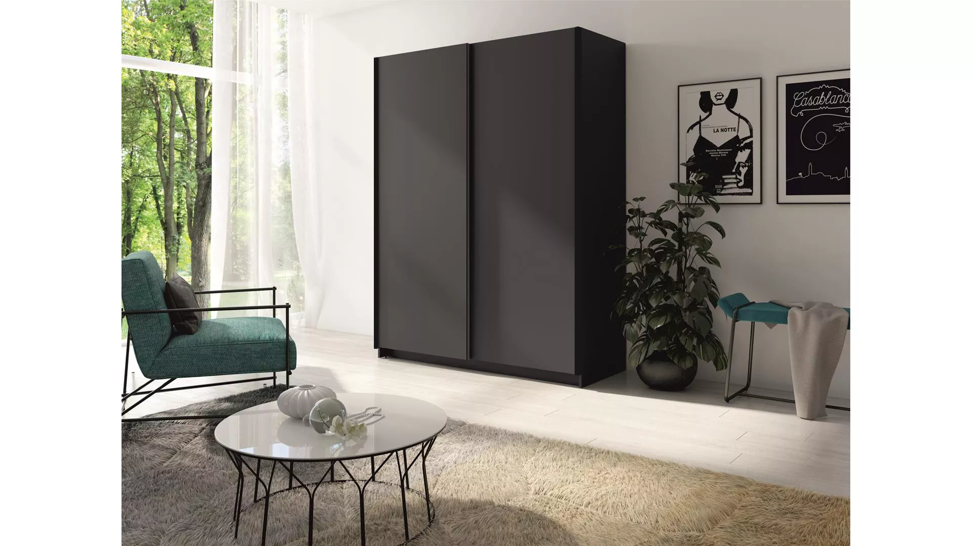 Široká šatní skříň 180 cm LORICA - grafitová
