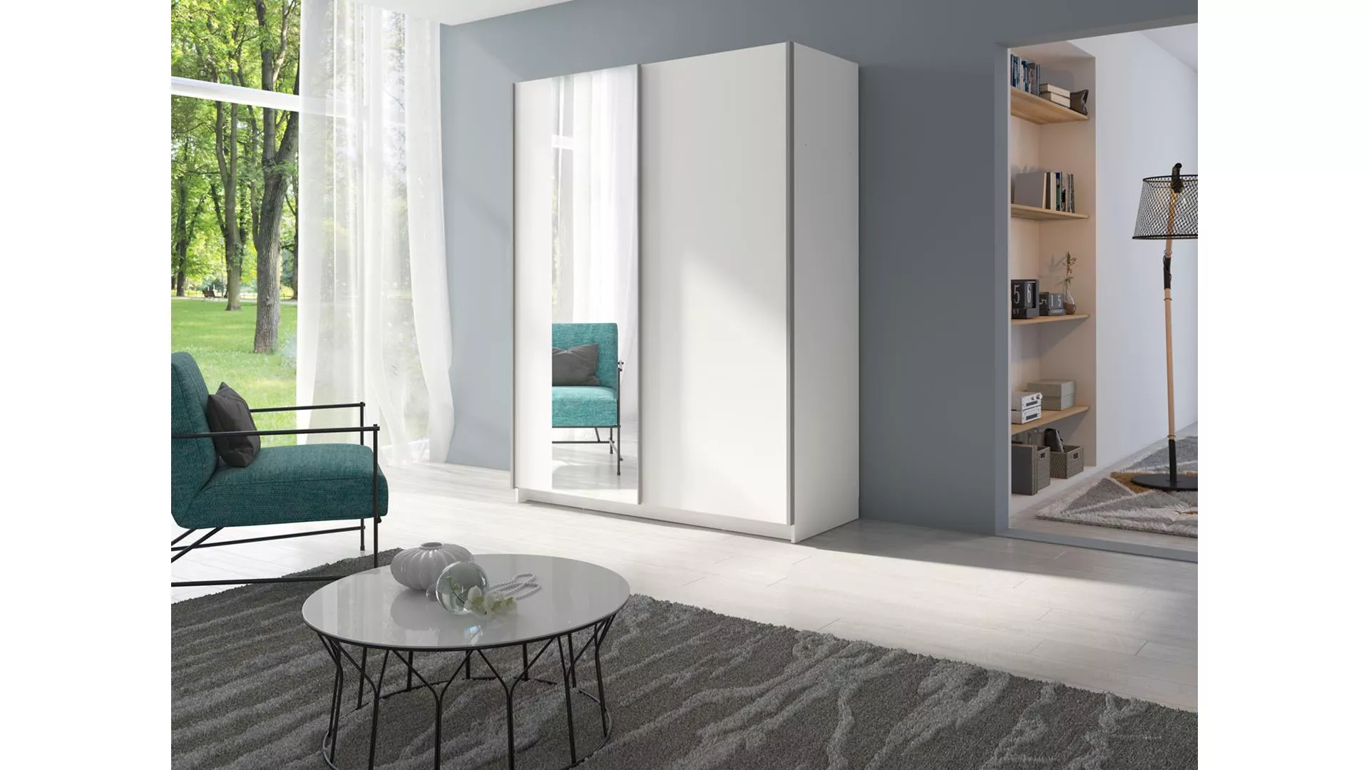 Vysoká šatní skříň 150 cm se zrcadlem LORICA - bílá