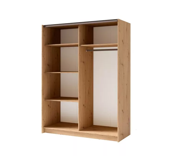 Pořiďte si širokou šatní skříň LORICA a spojte klasiku s praktickým řešením. Posuvné dveře se zrcadlem šetří místo a zajišťují pohodlný přístup k úložnému prostoru, navíc opticky zvětší místnost. Uvnitř se skrývá šatní tyč a police, které nabízejí dostatek místa pro uspořádání oblečení i doplňků.