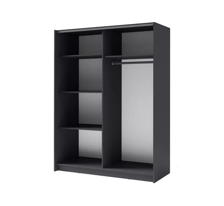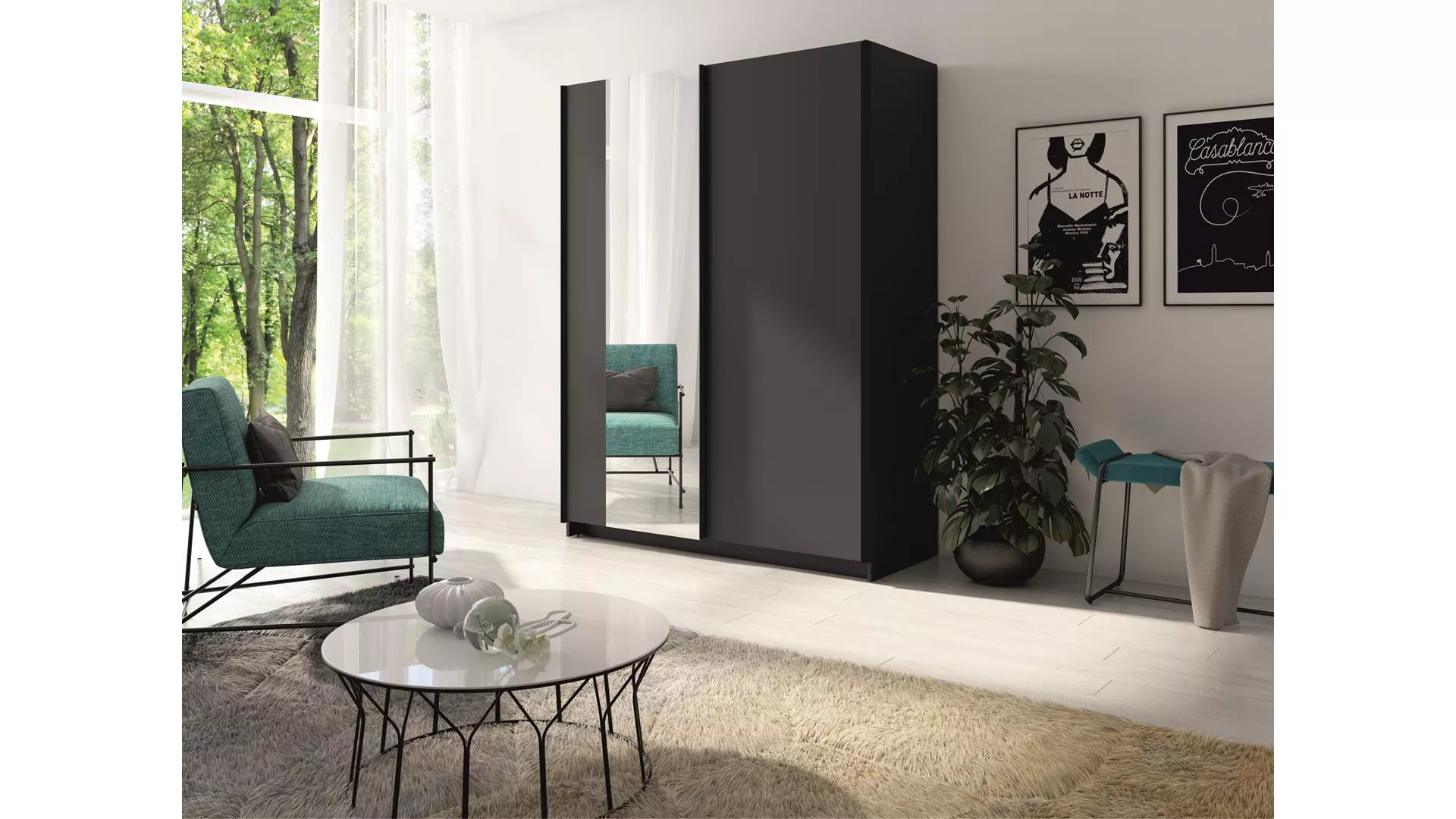 Široká šatní skříň 180 cm se zrcadlem LORICA - grafitová