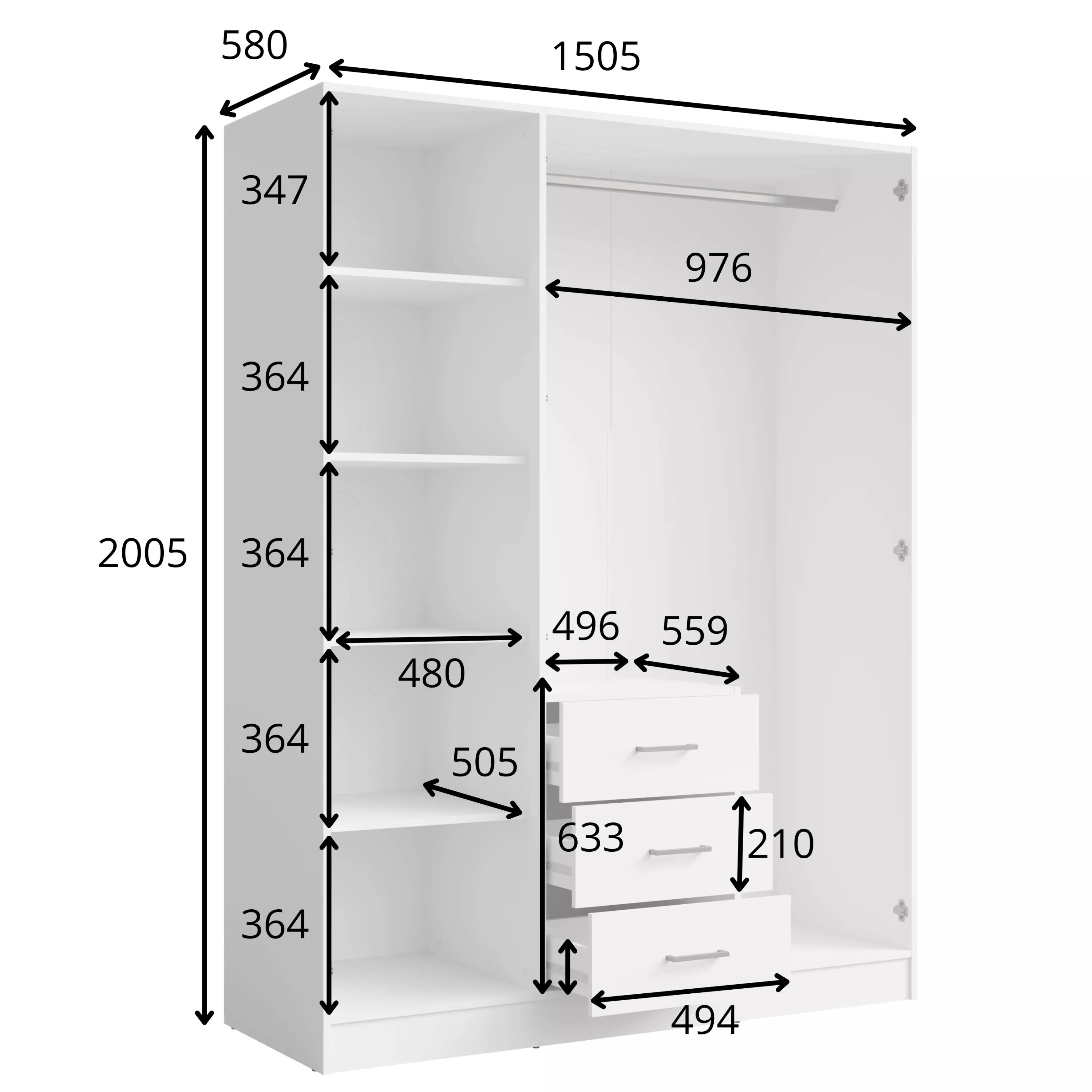 Šatní skříň se zrcadlem 151 cm SIBATE - bílá