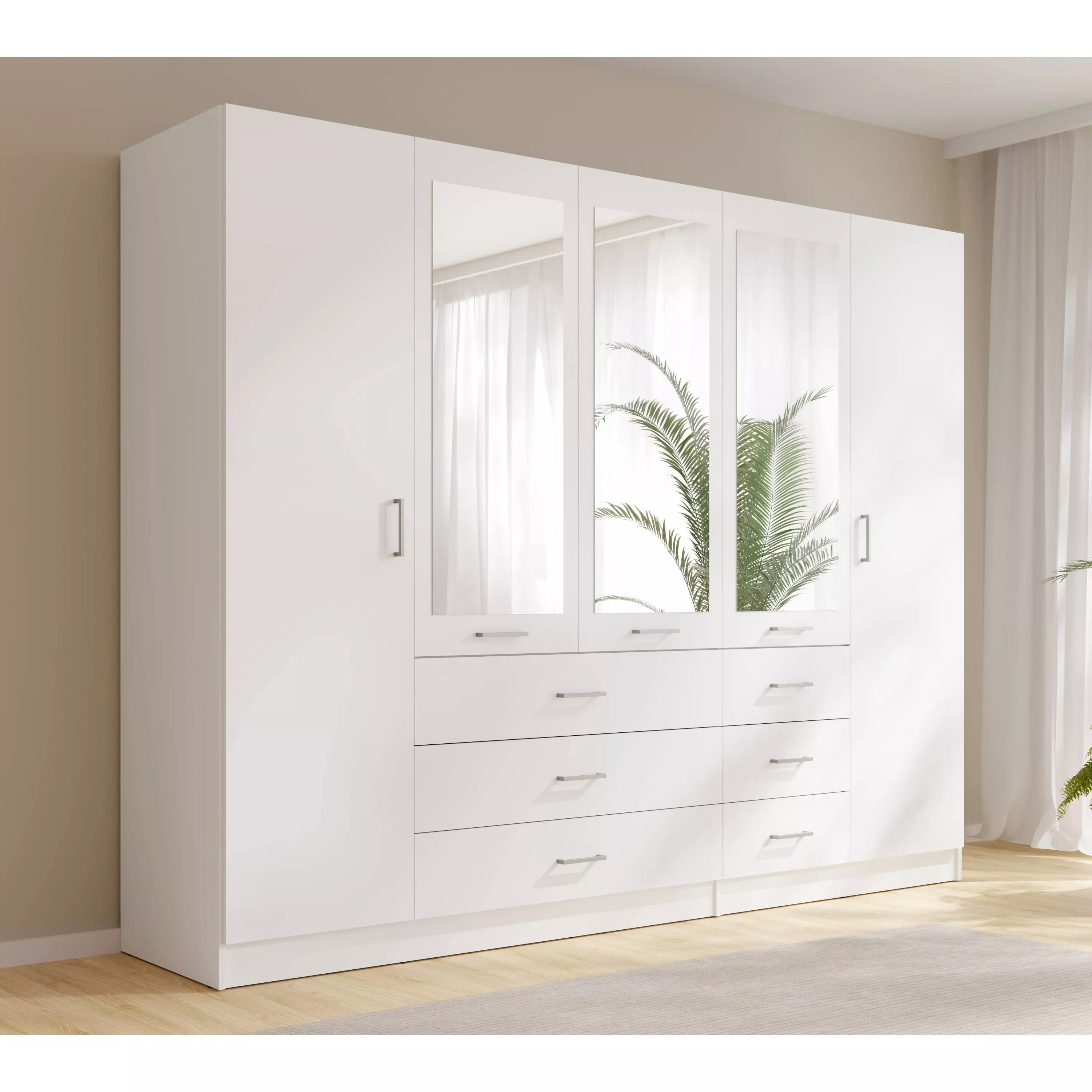 Velká šatní skříň se zrcadlem 250 cm SIBATE - bílá