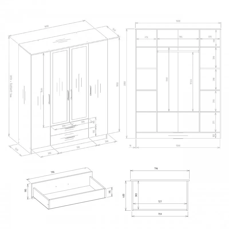 Šatní skříň se šuplíky 160 cm RAGNAR skvěle zapadne do všech moderních ložnic. Skříň poskytuje dostatek úložného prostoru pro uložení a zavěšení oblečení. Disponuje policemi, šuplíky a šatní tyčí.