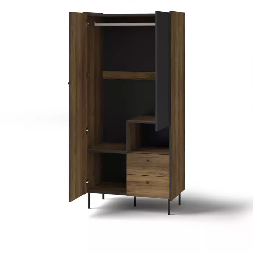 Vysoká šatní skříň 89 cm ASHEBORO - ořech / černá