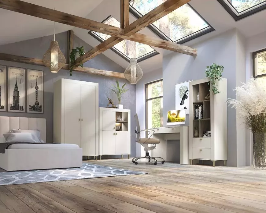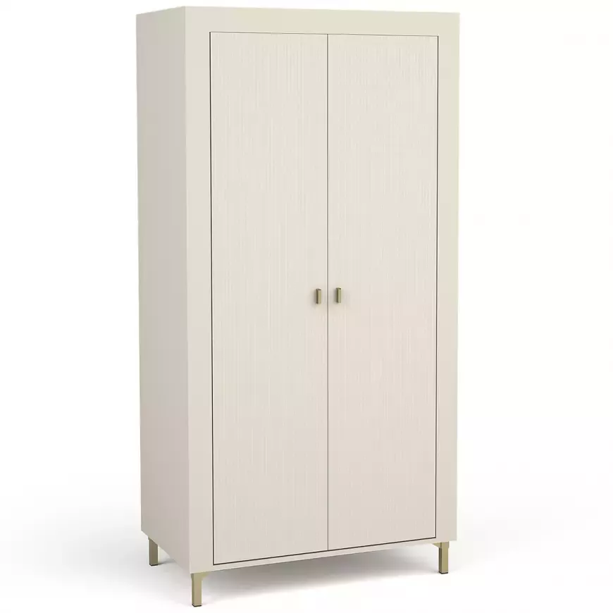 Šatní skříň 97 cm AUROVA stylově zapadne do moderních a skandinávských interiérů. Kombinace polic a šatní tyče nabídne praktické uložení vašeho oblečení. Drážkovaná dvířka dodávají nábytku jemný, ale výrazně elegantní vzhled.