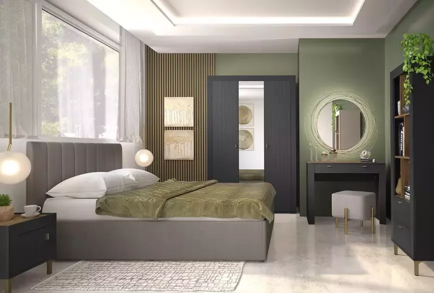 Šatní skříň 138 cm se zrcadlem AUROVA stylově zapadne do moderních a skandinávských interiérů. Kombinace polic a šatní tyče nabídne praktické uložení vašeho oblečení. Drážkovaná dvířka dodávají nábytku jemný, ale výrazně elegantní vzhled.