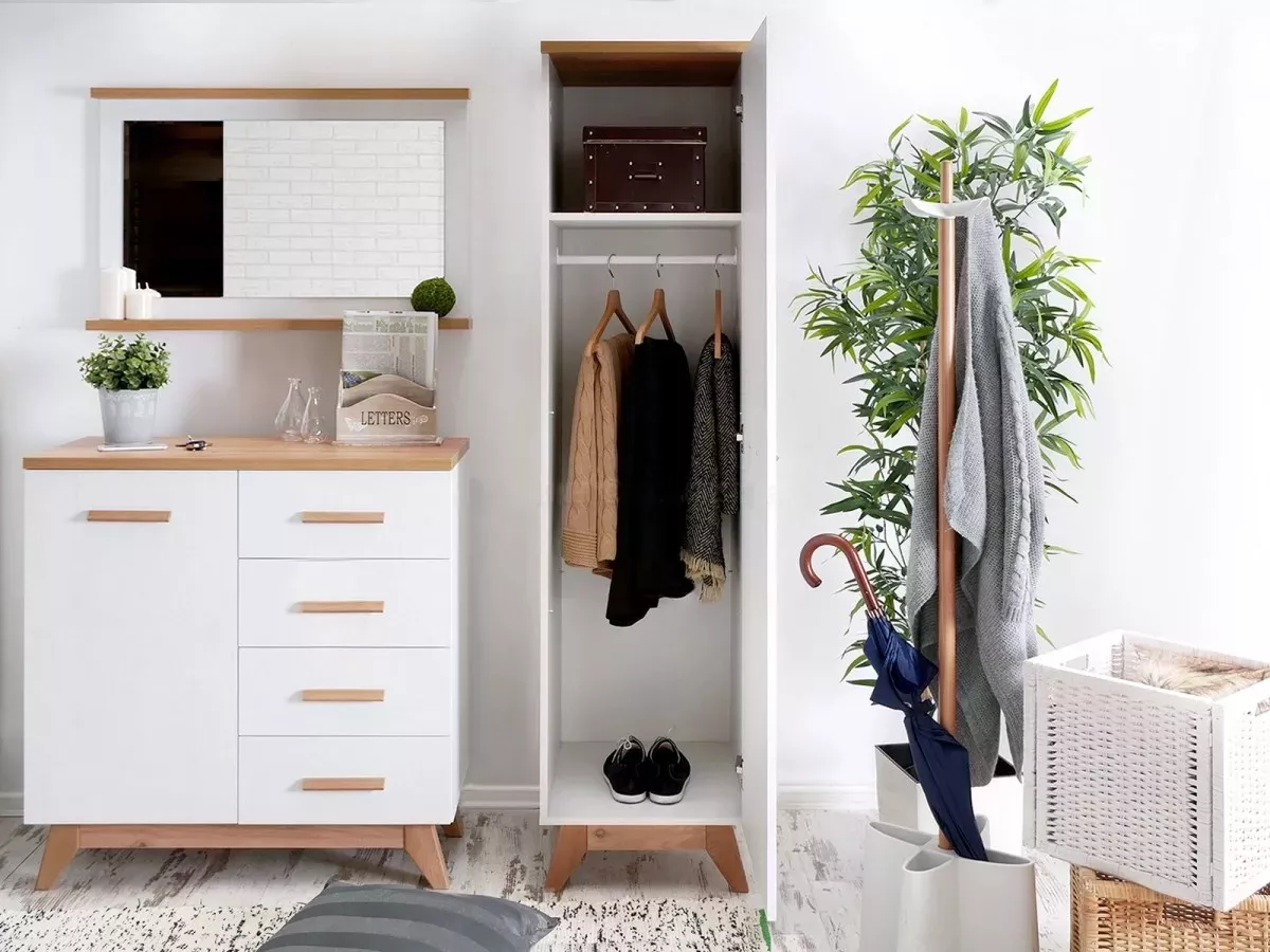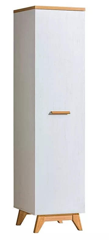 Policová šatní skříň 45 cm BUTNER dokonale zapadne do každé ložnice ve skandinávském stylu. 3 police a šatní tyč nabídnou praktické řešení pro uložení oblečení i doplňků. Stabilitu skříni poskytují masivní vysoké nožky.