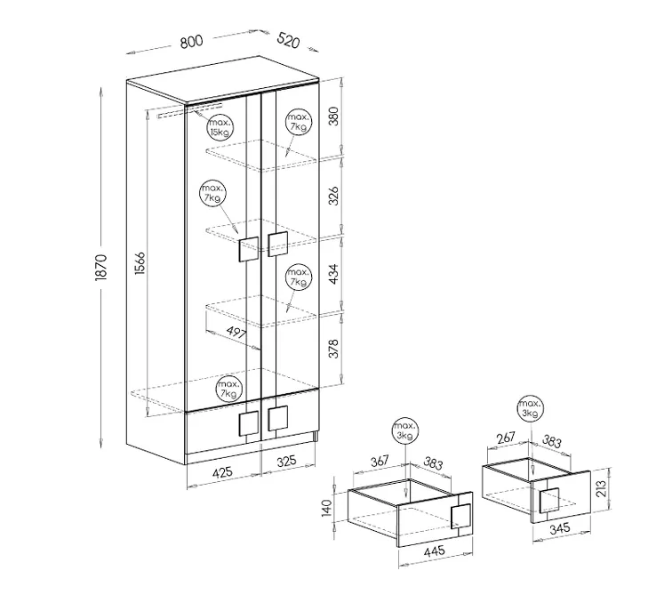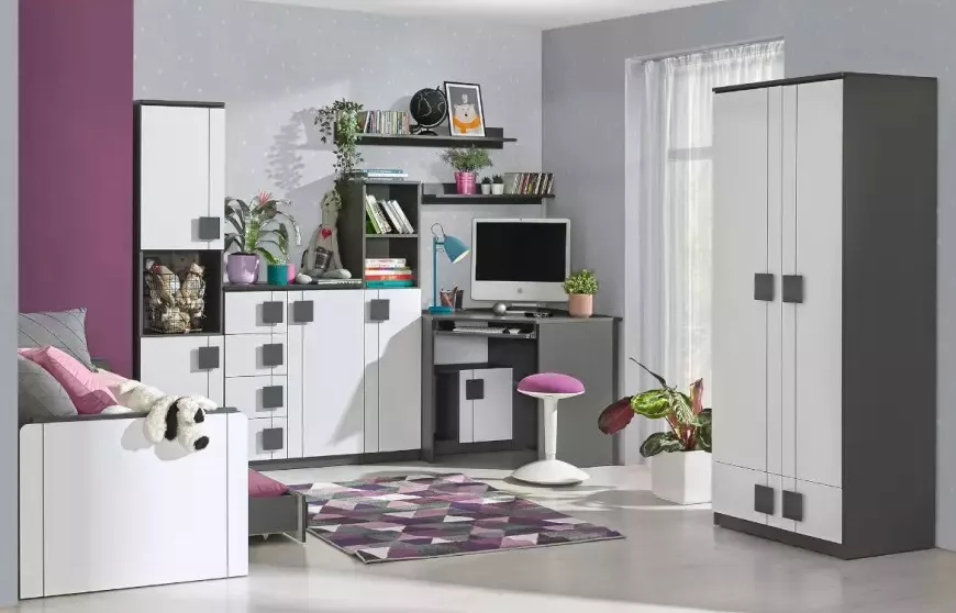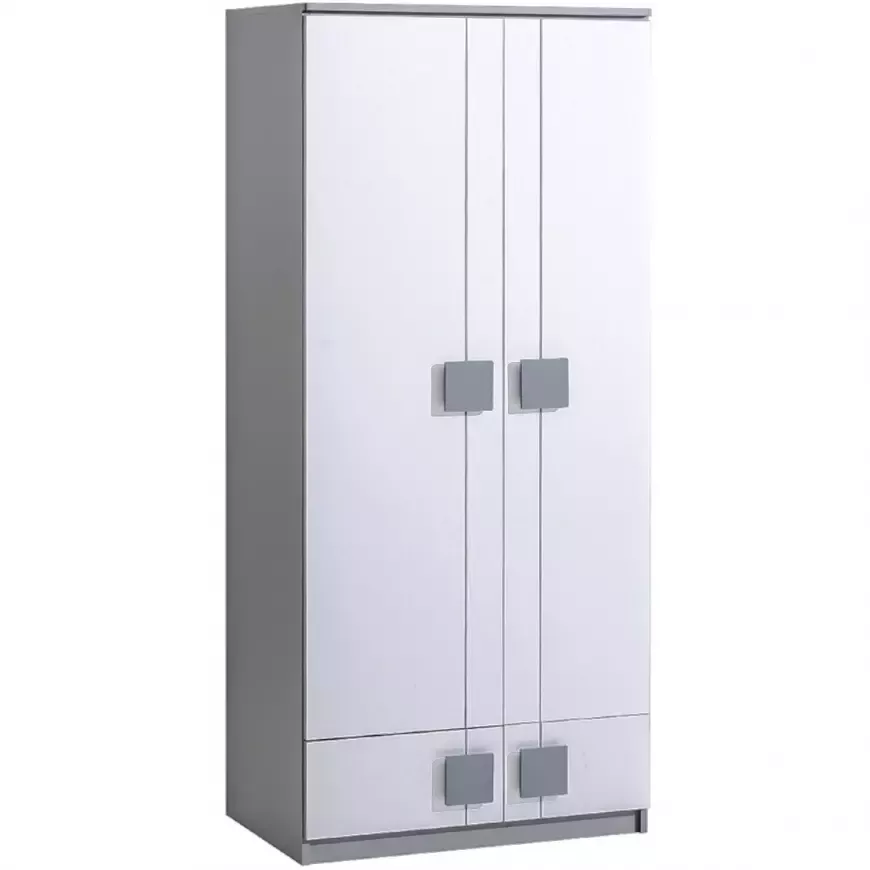 Šatní skříň 80 cm BURGAW je stylový a praktický kousek do každého dětského a studentského pokoje. Skříň disponuje 2 šuplíky, šatní tyčí a 3 policemi pro uložení veškerého oblečení. Na první pohled zaujme svými dekorativními úchytkami ve tvaru čtverce.