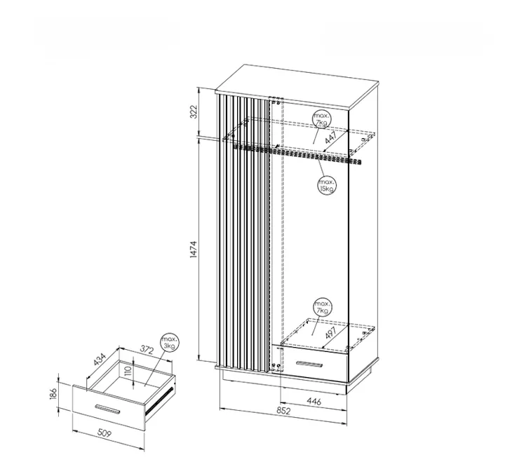 Šatní skříň 90 cm CATAWBA na první pohled zaujme svými designovými lamelovými dvířky. Skříň nabídne spoustu úložného prostoru pro uložení veškerého oblečení. Její originální design a kvalitní zpracování vdechnou vašemu interiéru nadčasový styl a eleganci.