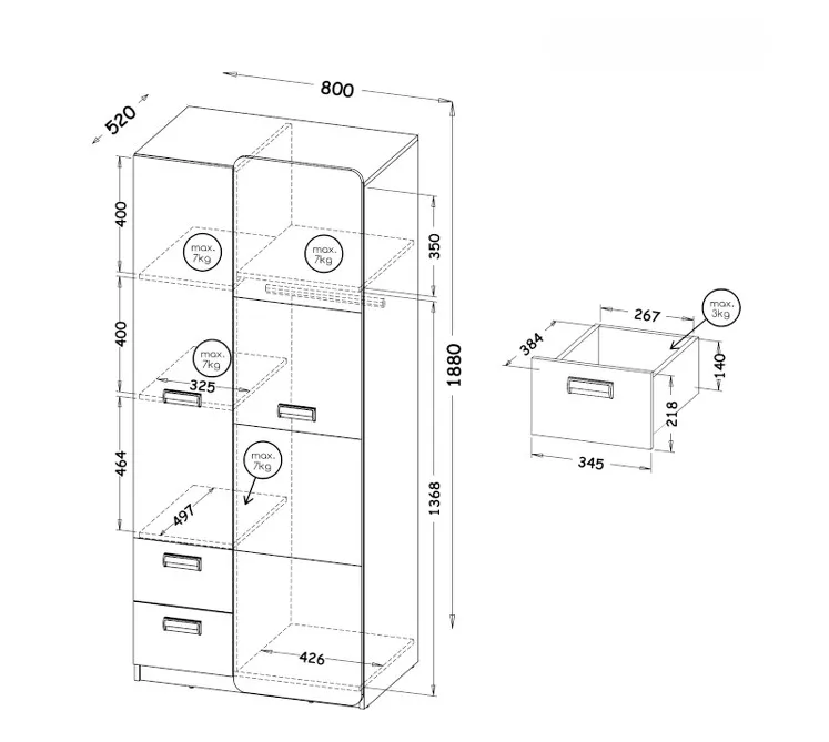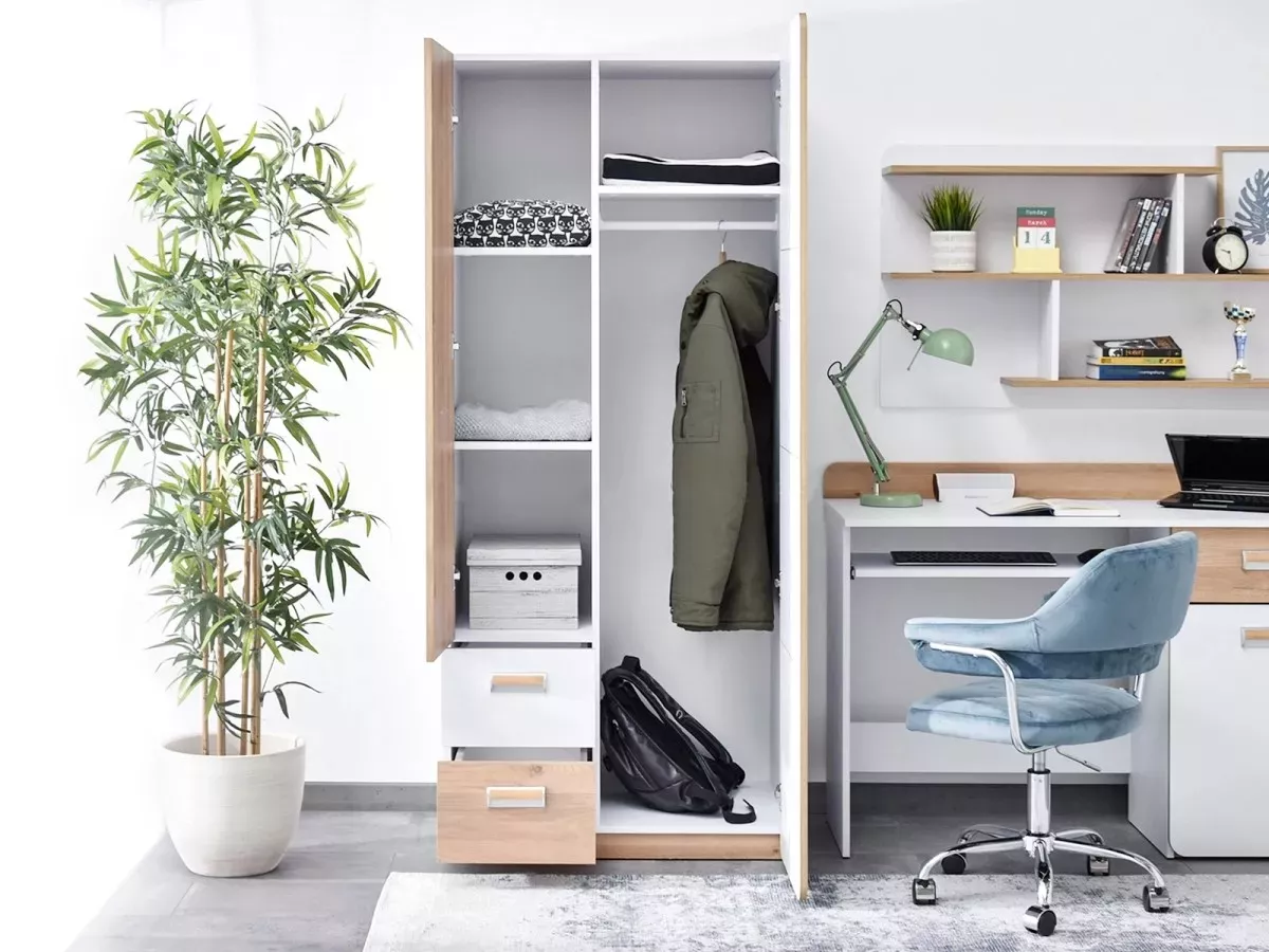 Kombinovaná šatní skříň 80 cm CEDAR je velmi praktickým kusem nábytku, který najde uplatnění v mnoha stylech interiéru. Nabízí 2 šuplíky, šatní tyč a 3 police. Navíc je skříň vybavená systémem tichého zavírání, což zpříjemní každodenní používání.